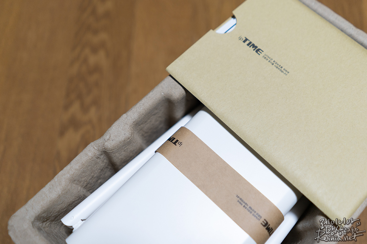 타워형 디자인을 채택했지만, 아이피타임 디자인 언어는 그대로 채택했습니다. 아이피타임하면 떠오르는 하얀색 색감, 그리고 재생지를 바탕으로 한 포장지... 아이피타임하면 떠오를 그 요소가 그대로 녹아있습니다. 단지 타워형이라는 게 다르죠.