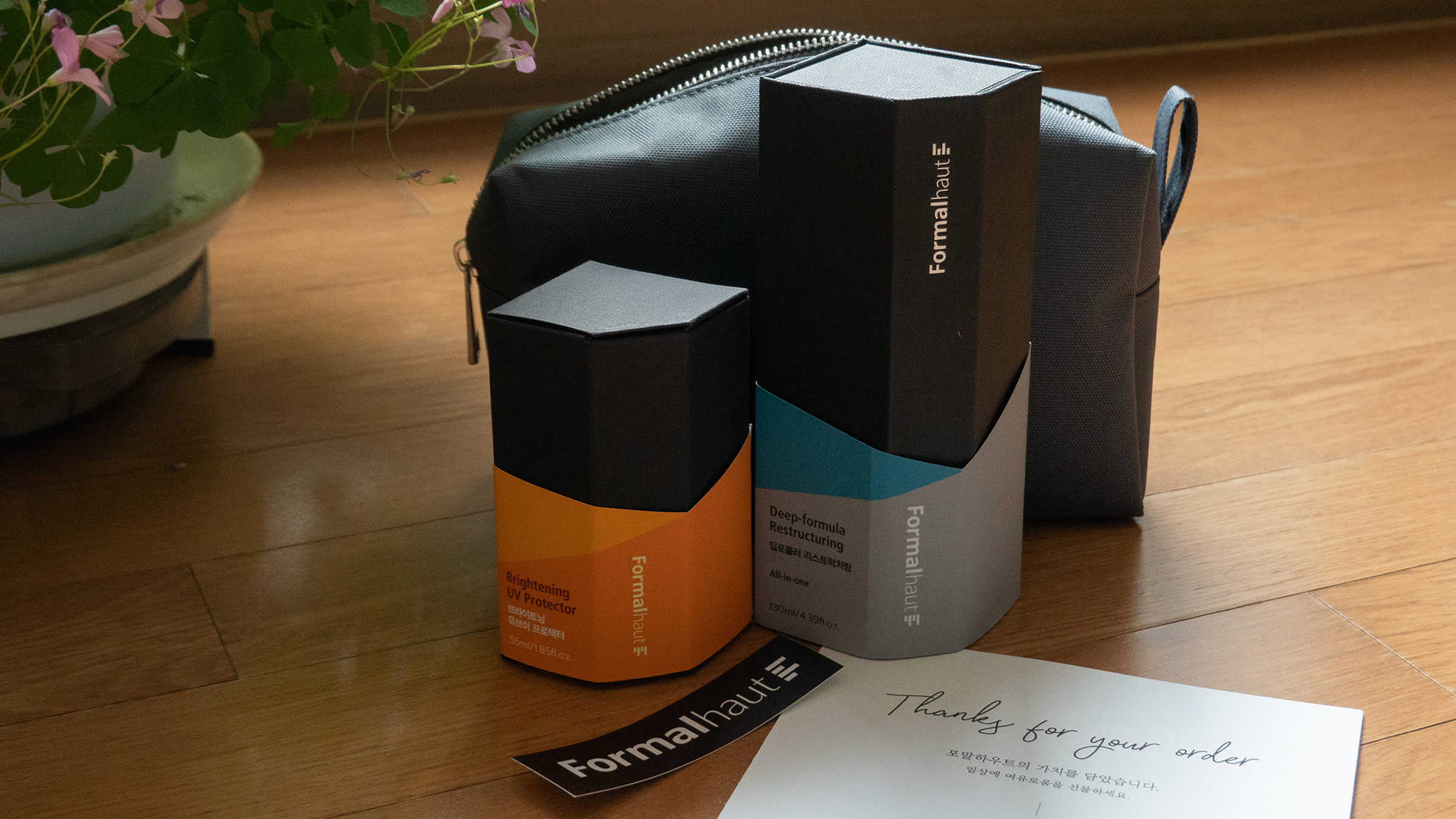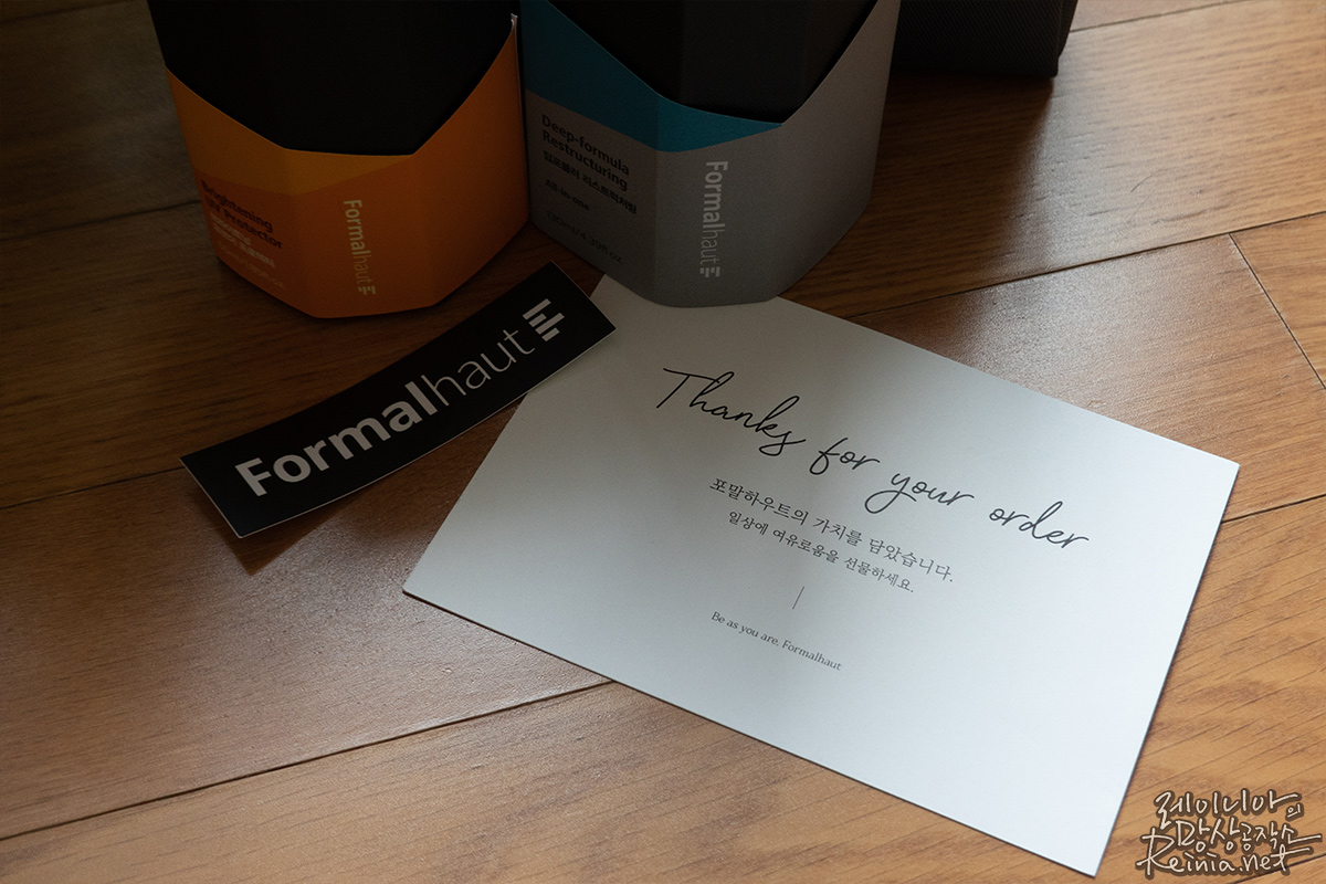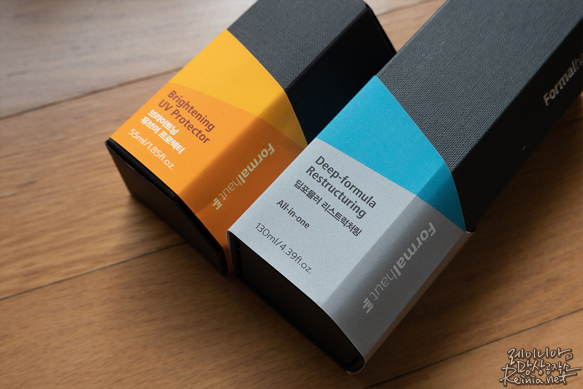 제가 받은 건 두 개의 제품입니다. 딥포뮬러리스트럭처링 올인원, 그리고 브라이트닝유브이프로텍터, 덤으로 이를 담을 수 있는 다용도 파우치까지요. 택배로 온 선물을 열자마자 작은 카드가 보였는데, 이런 세심한 부분에서 소비자를 신경 쓴다는 느낌을 받았습니다.