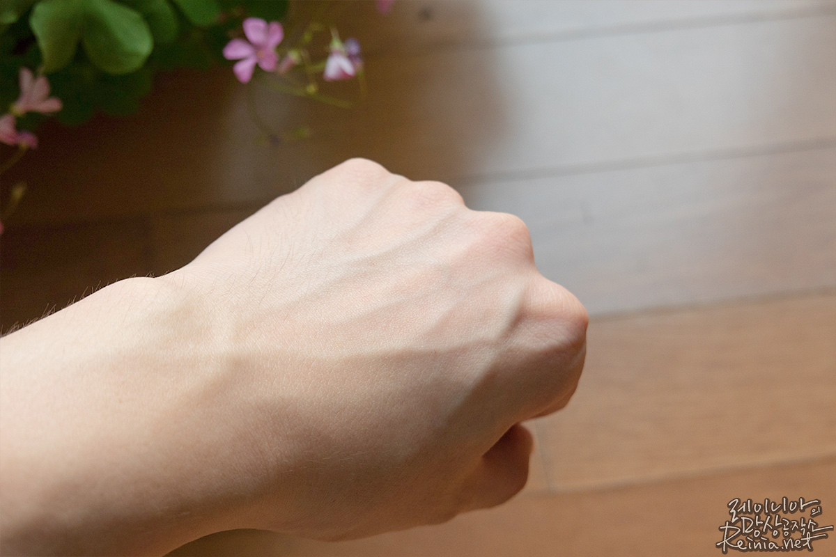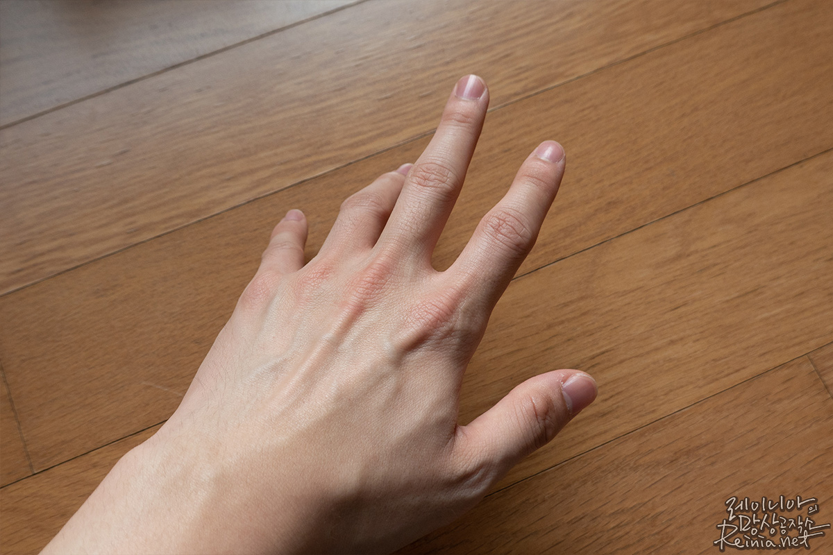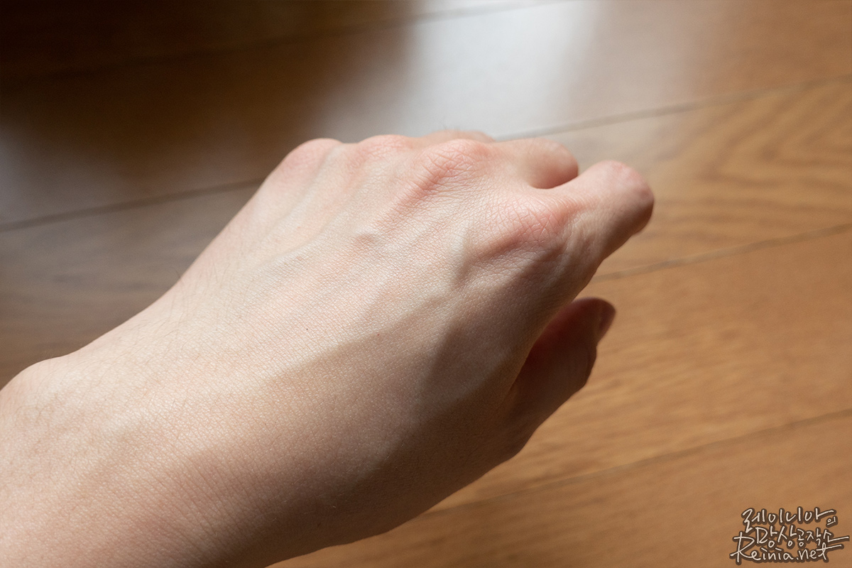 사진으로 보니 좀 덜한 감은 있지만, 확실히 정돈된 느낌입니다. 손등만 묘하게 뽀야네요. 기분이 묘했습니다. 마찬가지로 꾸준히 바르면 로즈마리잎 추출물, 라벤더잎 추출물로 미백과 주름 개선 효과를 기대할 수 있으며, 트리플히알루론산, 대나무수, 카렌듈라꽃추출물과 같은 보습 성분으로 보습까지 기대해봄 직합니다.