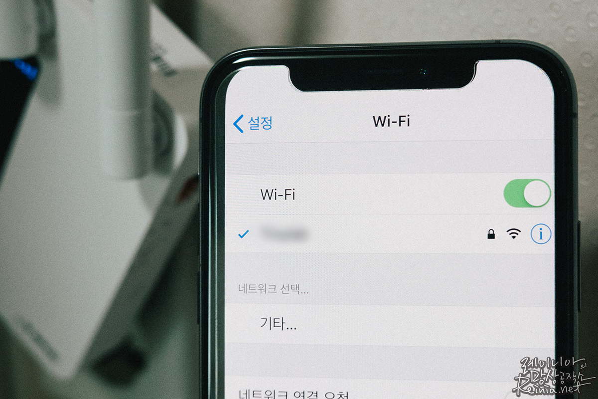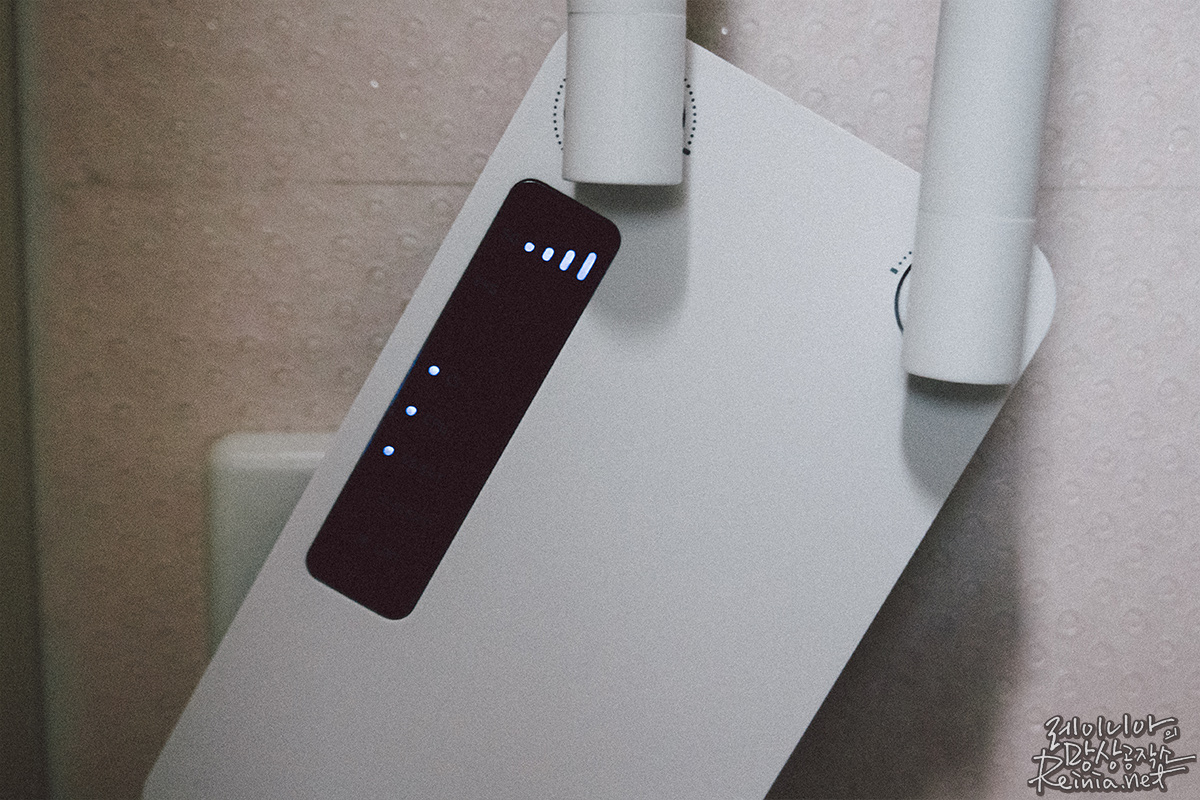 설치를 마치고 전원을 켜기 전, 안테나가 2칸이었던 곳에서 전원을 켜니 안정적으로 세 칸의 와이파이 신호를 볼 수 있었습니다. 신호 세기의 문제뿐만 아니라 인터넷 속도도 극적으로 변하는 걸 확인할 수 있었는데요.