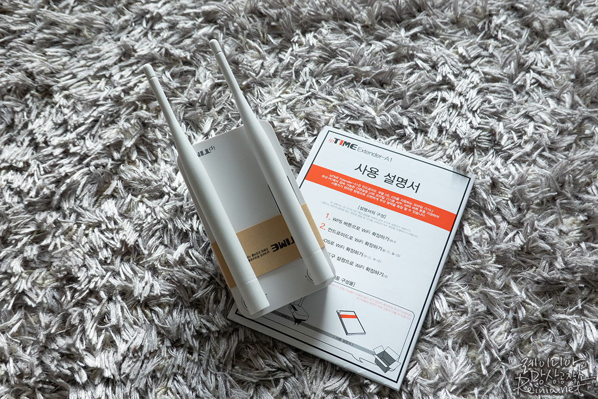 아이피타임 익스텐더 A1을 열면 간단한 구성품이 반깁니다. 아이피타임 패키지 디자인이야 이제 굳이 말씀드리지 않아도 되겠죠? 지난번에도 와이파이확장기를 소개해드렸는데, 지난번 제품과의 차이점은 기가 인터넷을 지원하느냐의 차이입니다. 아이피타임 익스텐더 A1은 저렴한 대신 기가 인터넷을 지원하지 않습니다.
