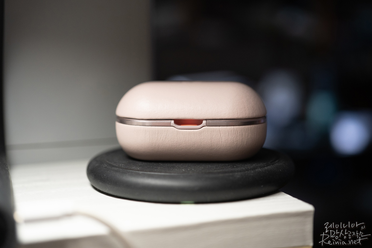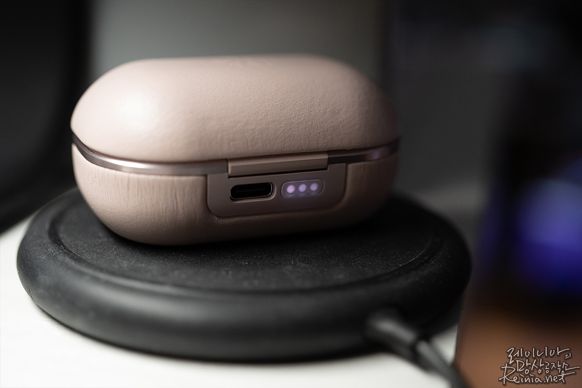 이번 뱅앤올룹슨 e8 2.0 케이스는 Qi 규격의 무선 충전을 지원합니다. 최대 10W까지 지원하기에 꽤 빠른 속도로 충전할 수 있는데요. 케이스에 케이블을 일일이 찾아 끼우지 않고, 무선 충전패드 위에 올려두기만 해도 충전이 되는 건 편의성이 대폭 상승했다 하겠습니다. 무선 충전 기술도 대중에게 충분히 익숙해졌겠다. 이제와 굳이 피할 이유는 없죠. 편의성과 활용도가 뛰어나다고 생각합니다.