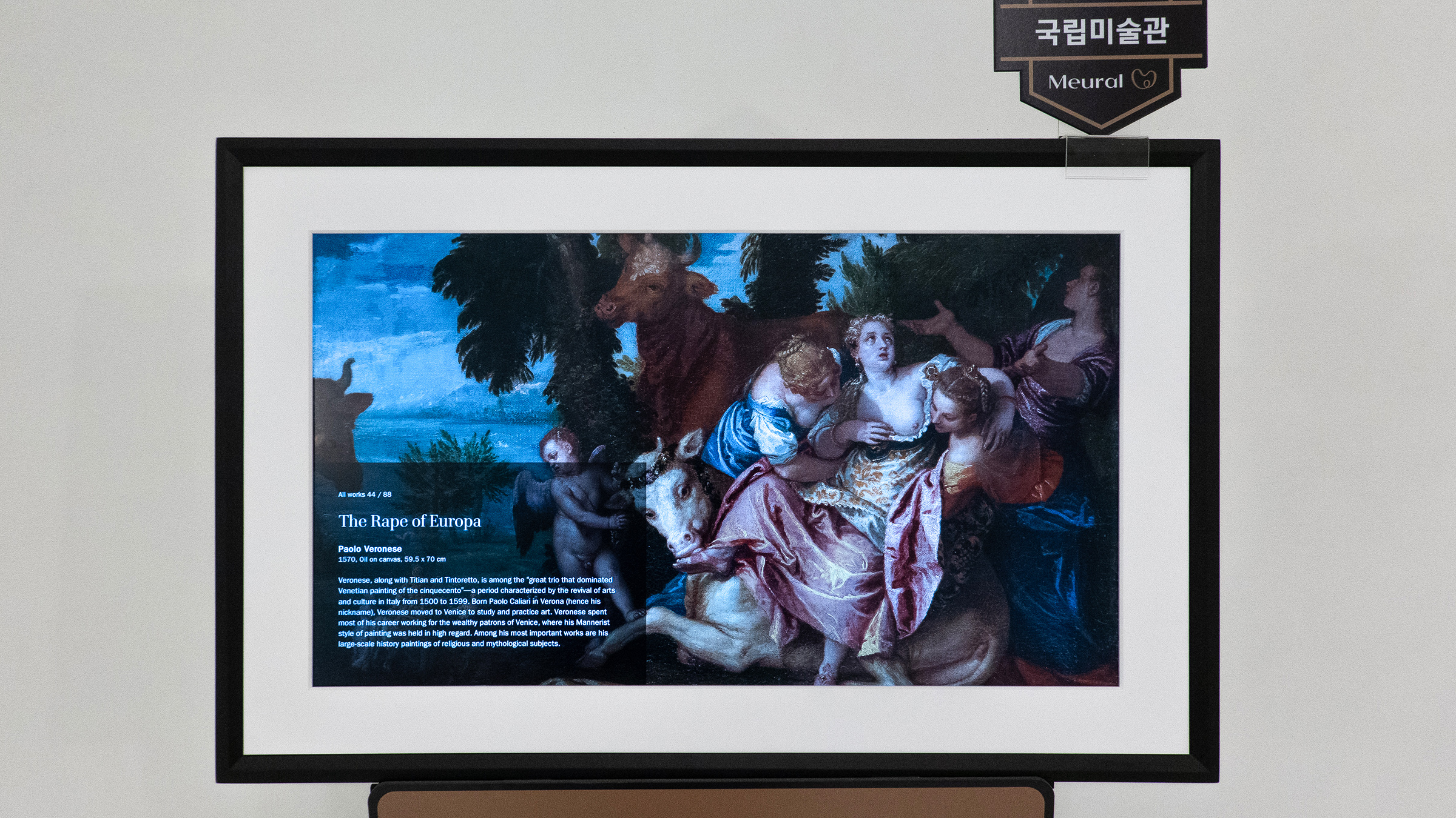 트루 아트 기술(TrueArt Technology)라는 이름의 이 기술은 하드웨어와 소프트웨어가 이미지를 실물처럼 표현하기 위해 적용한 기능입니다. 박물관 원본의 질감을 살리기 위한 노력을 했다고 하는데요. 그래서 실제 전시된 그림을 보면 생각했던 것보다 더 생생한 느낌의 그림을 만나볼 수 있었습니다.