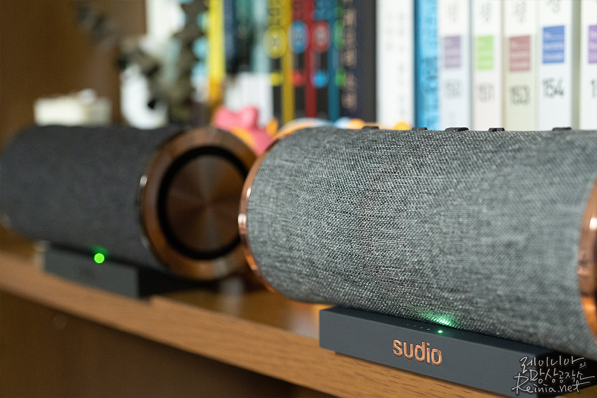 수디오 펨티오의 장점은 듀얼 플레이 모드(Dual play mode)를 지원한다는 점입니다. 이름만 들어도 어떤 기능인지 짐작하시겠죠? 이 기능은 수디오 펨티오 두 대를 연결해 좌, 우 스테레오로 재생할 수 있도록 하는 기능입니다. 어느 정도 고급 스피커라면 지원하는 기능이기도 합니다.