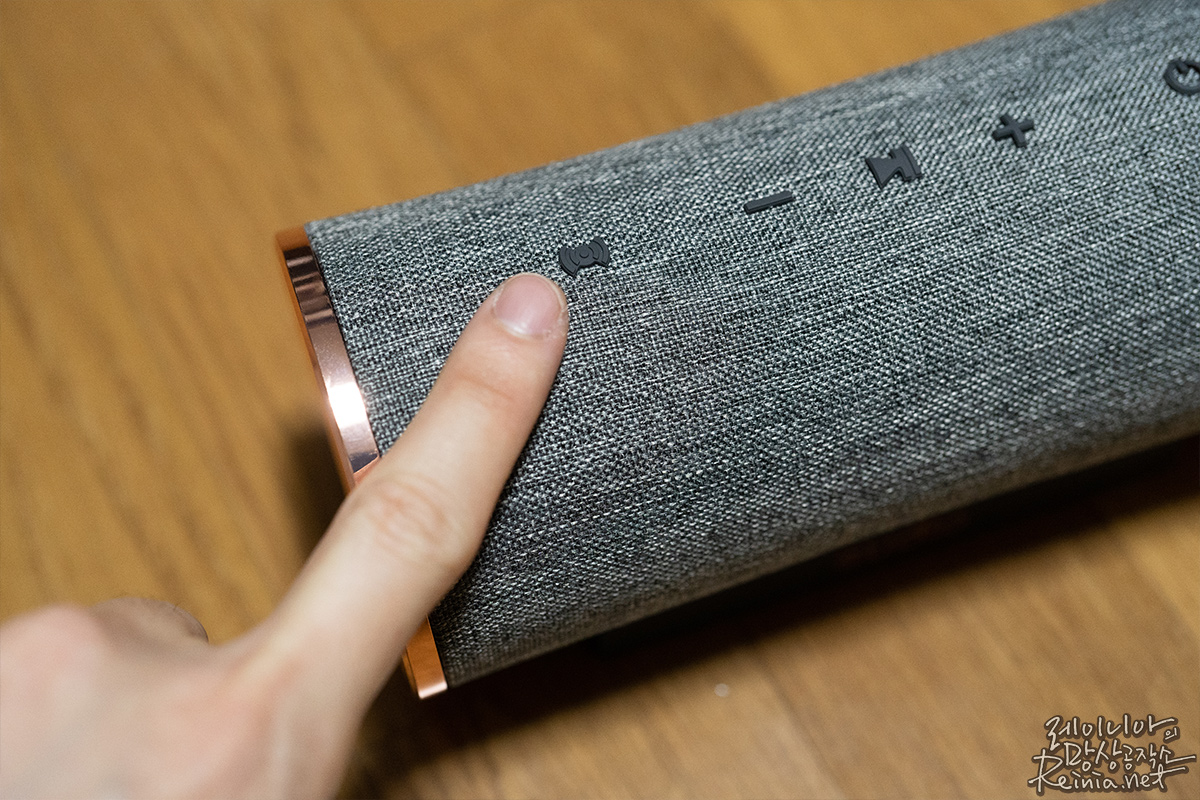 듀얼 플레이 모드 중 다시 한 대의 스피커만 쓰고 싶다면, 우선 어느 쪽의 스피커든 전원 버튼을 길게 눌러 전원을 끕니다. 그러면 두 스피커가 동시에 꺼지게 되는데요. 이제 둘 중 하나의 펨티오를 켜면 한 대로 음악을 들을 수 있습니다.
