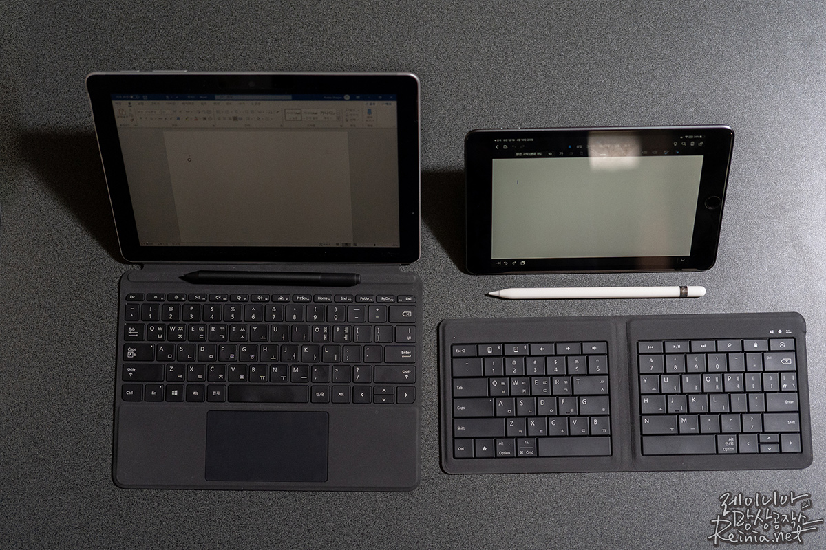외부에 서피스고를 들고 다닐 때마다 키보드와 펜을 지원하는 윈도우 기기가 이렇게 가벼운 점은 큰 장점이라는 생각을 합니다. 아이패드 미니가 많은 부분을 채워넣었다고 하지만, 실제로 서식을 갖춰야 할 자료에서 iPad OS 워드는 신뢰도가 떨어져 쓰지 못하게 됩니다.