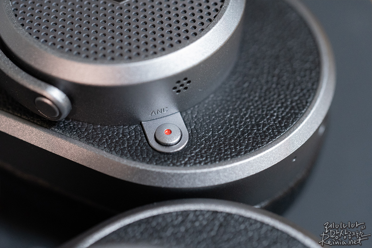 특이한 점은 왼쪽에 ANC 버튼이 있어서 ANC 기능을 조절할 수 있습니다. ANC 단계는 2단계로 버튼을 눌러 전환할 수 있습니다. ANC High, ANC Low, ANC Off가 순서대로 전환됩니다.