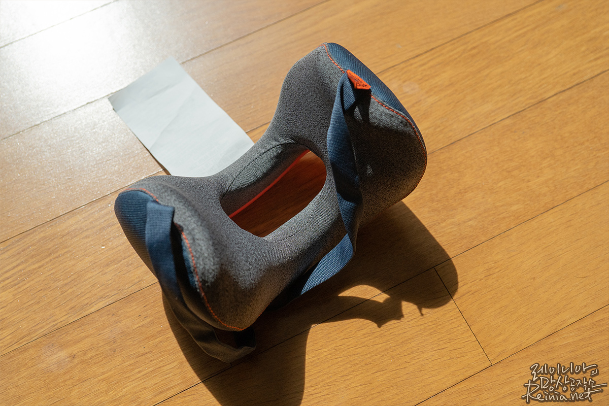 불버드 BR2의 특징은 앞서 말씀드렸다시피 달리 외부에 프레임이 있고, 그 안을 메모리폼으로 채우고 있다는 점입니다. 다른 목베개는 대부분 전체가 말랑말랑한 재질(메모리폼, 공기, 작은 알갱이 형태의 재질)로 돼 있으나, BR2는 외부의 프레임이 목베개 전체의 형태를 고정합니다.