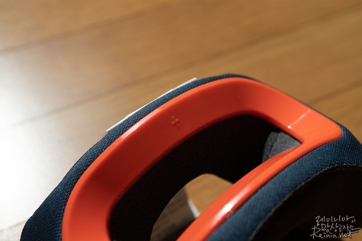외부 프레임을 잘 보면 위아래에 양각으로 +, -가 새겨져 있습니다. 이를 통해 목을 젖힐 수 있는 각도를 조절할 수 있습니다. +부분이 살짝 도톰하게 설계돼, 이 부분을 받치면 고개를 '덜' 젖힐 수 있습니다.