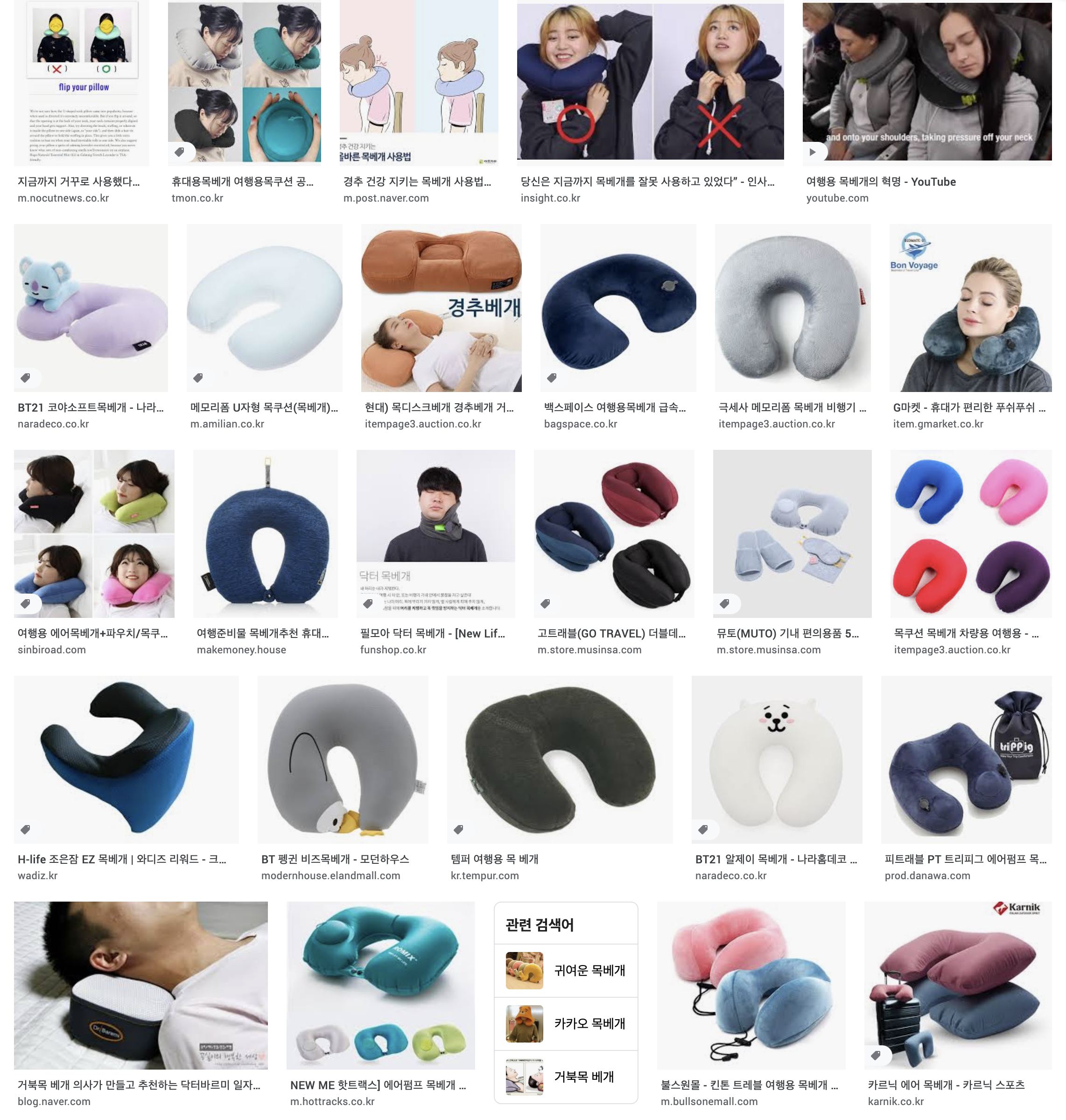 결국, 목베개를 보면서도 막상 손이 가지 않고 공항에서 급하게 사서 비행 후 버리거나, 받은 담요를 둘둘 말아 받쳐보거나, 그것도 아니면 그냥 고개를 좌로 우로 꺾어가며 비행기에 탈 수밖에 없습니다.
