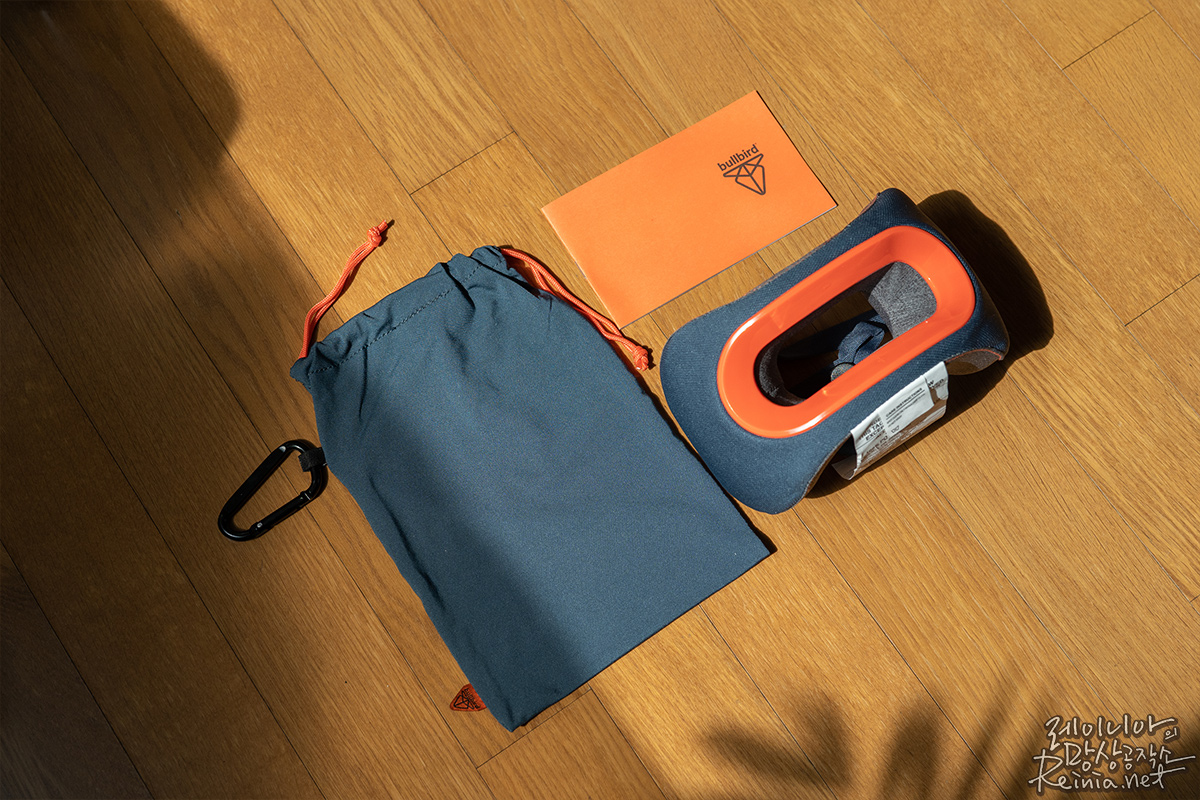 간단하게 구성된 패키지에는 불버드 BR2 본체와 이를 담을 수 있는 여행용 파우치가 들어있습니다. 여행용 파우치에는 카라비너가 있어 여행용 가방 등에 매달아둘 수 있게 해뒀네요.