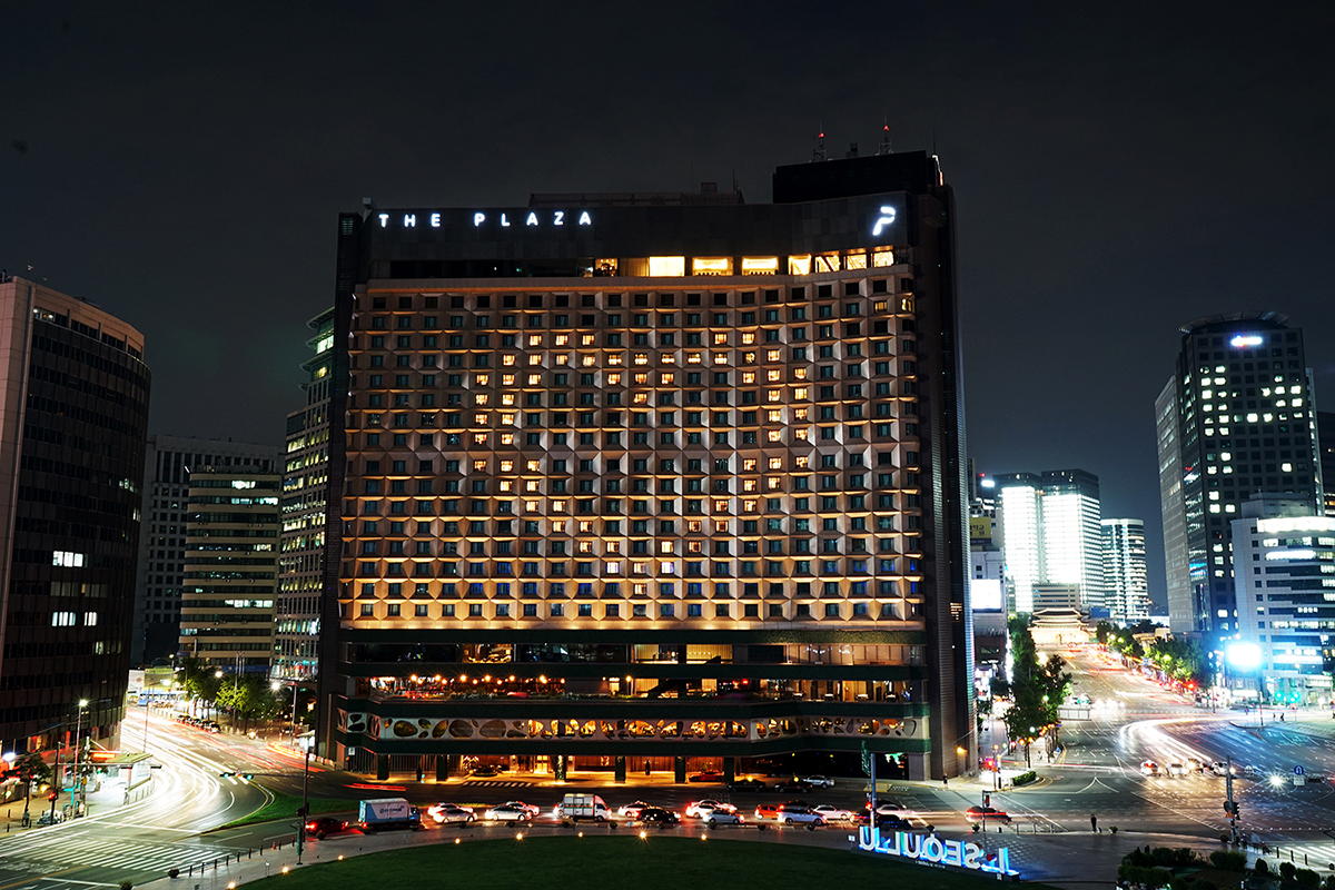 더플라자 호텔은 객실을 이용해 큰 하트를 꾸렸는데요. 어스름한 시각에는 이게 하트인가? 싶다가 해가 점점 지면서 객실 조명을 이용한 거대한 하트를 볼 수 있습니다.