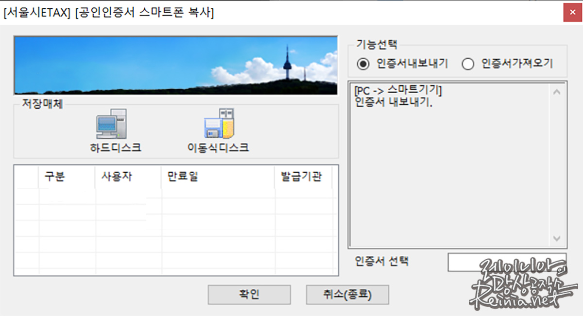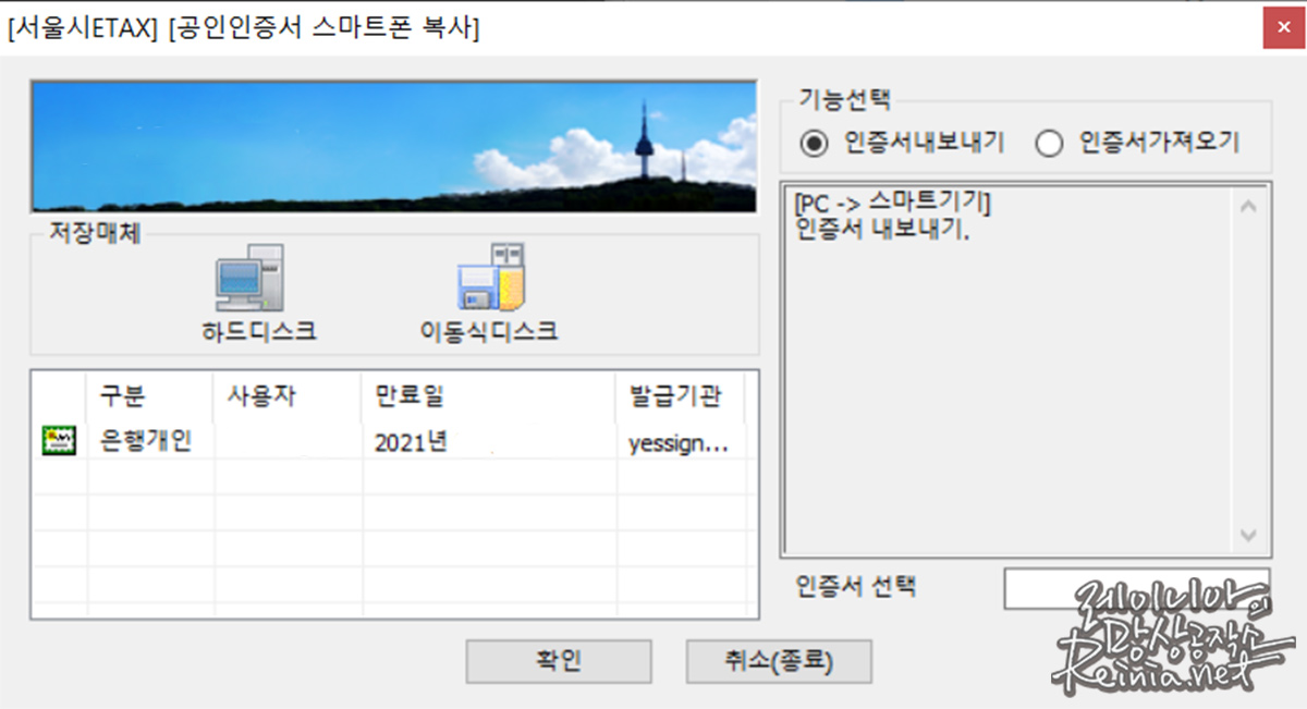 물론 공인인증서 관리 프로그램을 이용해 인증서 복사를 실행하고 옮기는 방법도 있습니다. 다만, 이 방식이 아무래도 편리하니까요. 편한 방식을 선택하시면 되겠습니다.