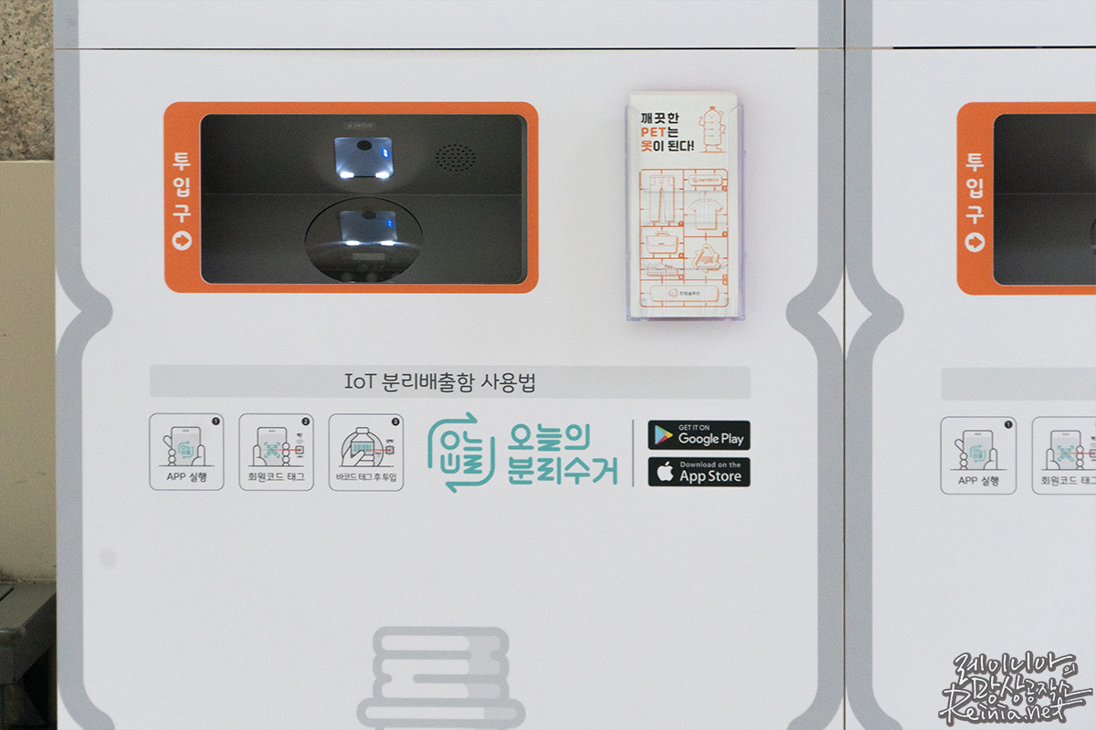 마침 수박 주스와 포카리스웨트를 마신 후 빈 페트병이 있어서 빈 페트병 두 개를 들고 직접 시도해봤는데요. 가장 먼저 해야 할 일은 '오늘의 분리수거' 앱을 설치하는 것이었습니다. 앱스토어와 구글 플레이스토어 모두에서 받을 수 있는데요. 저는 문제가 있는지 실제 진행했을 때 아이폰에선 잘 진행되지 않더라고요. 안드로이드 기기를 이용해 진행할 수 있었습니다.