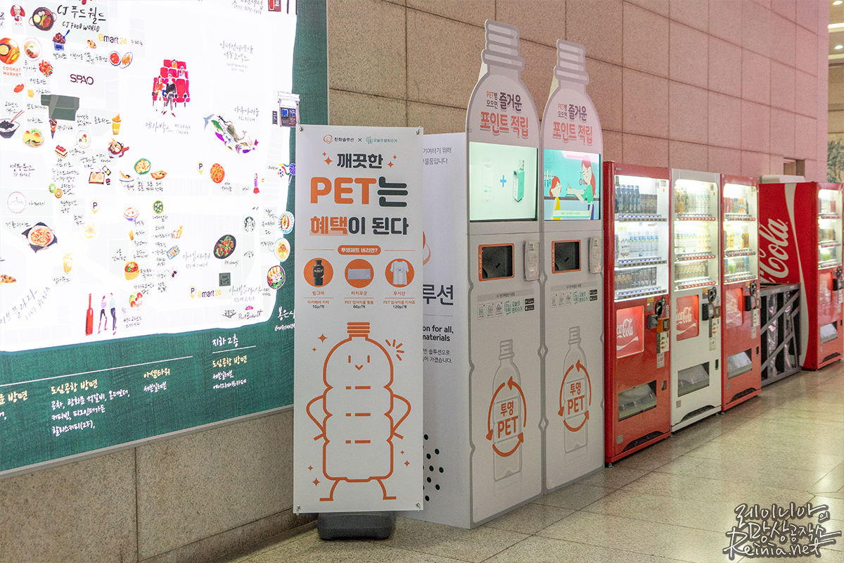 친환경 스타트업인 오이스터에이블은 재활용 IoT 기기를 제작하고 있습니다. '오늘의 분리수거'라는 앱과 재활용품 수거 기기는 재활용품을 내면 일정한 리워드를 사용자에게 제공해 분리 수거율을 높이고 참여를 독려하는 형태의 사업을 전개하고 있는데요. 여기에 한화솔루션이 컬래버레이션을 통해 '깨끗한 PET는 혜택이 된다!'는 이름으로 페트병을 수집하는 기기를 코엑스에 설치했습니다.