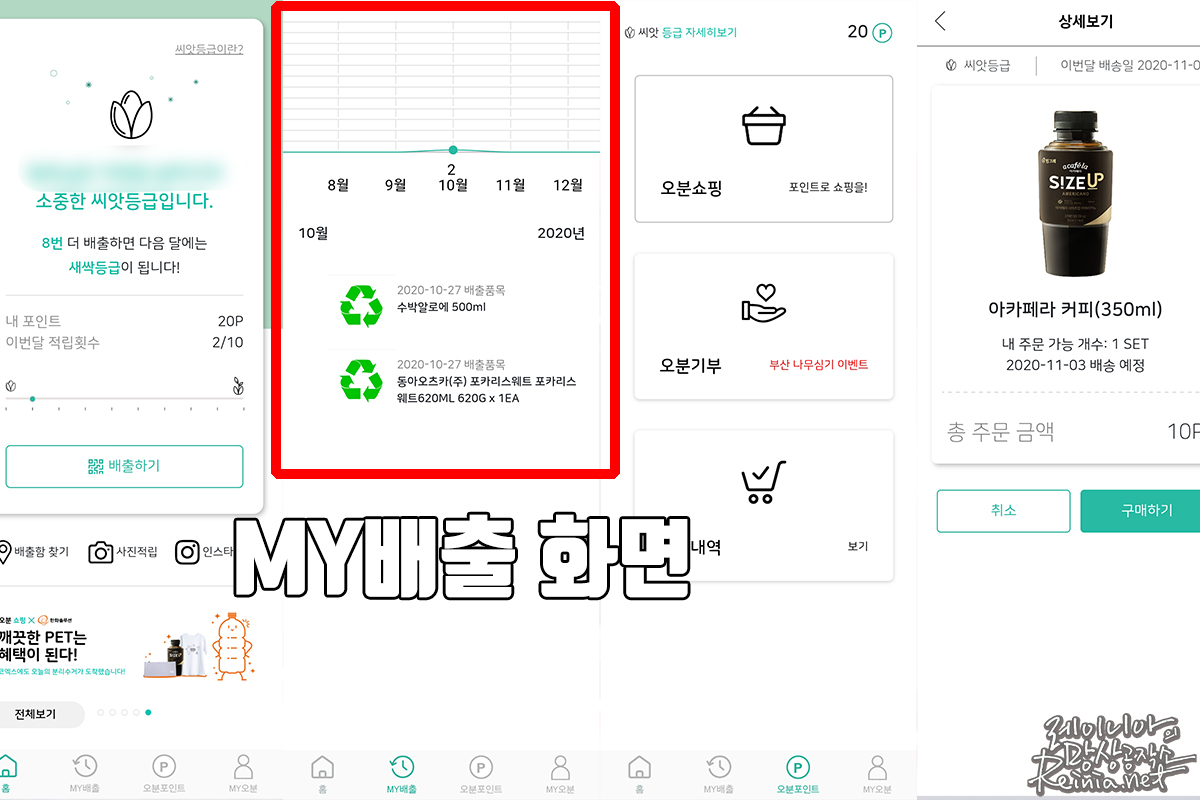 게다가 현재 이벤트로 10P를 이용해 커피를 한 잔 받을 수 있고, 12번 분리배출에 참여하면 기념 티셔츠도 받을 수 있어 물욕(!?)마저 채울 수 있다는 장점이 있습니다.