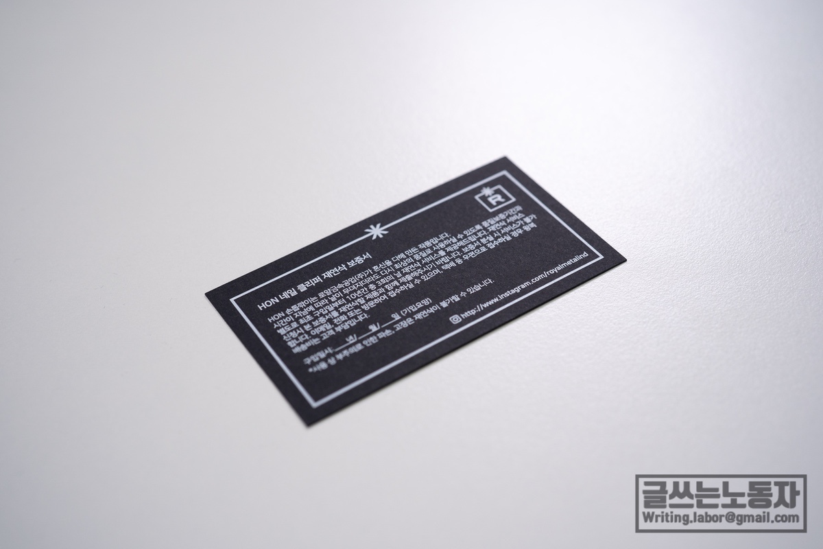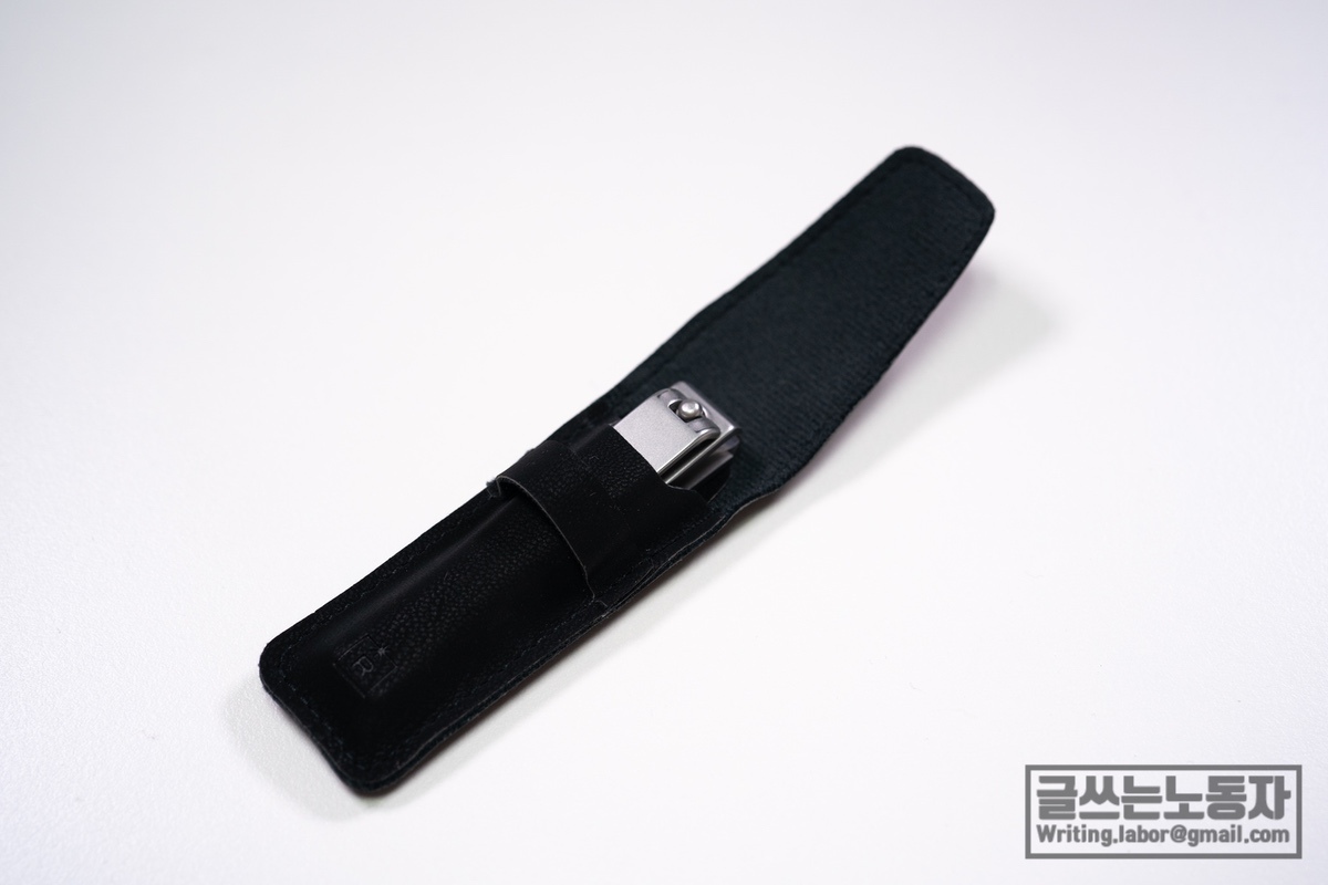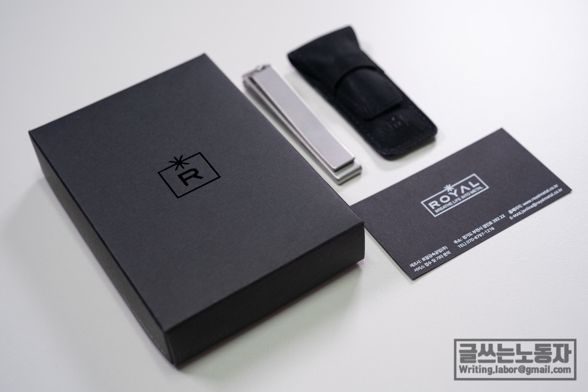 제법 긴 시간이 지난 후 로얄금속공업의 로고가 새겨진 깔끔한 패키지를 손에 들 수 있었다. 패키지 안에는 HON 손톱깎이 본체와 PU 가죽 케이스, 그리고 재연삭 보증서(AS)가 한 장 들어있었다.