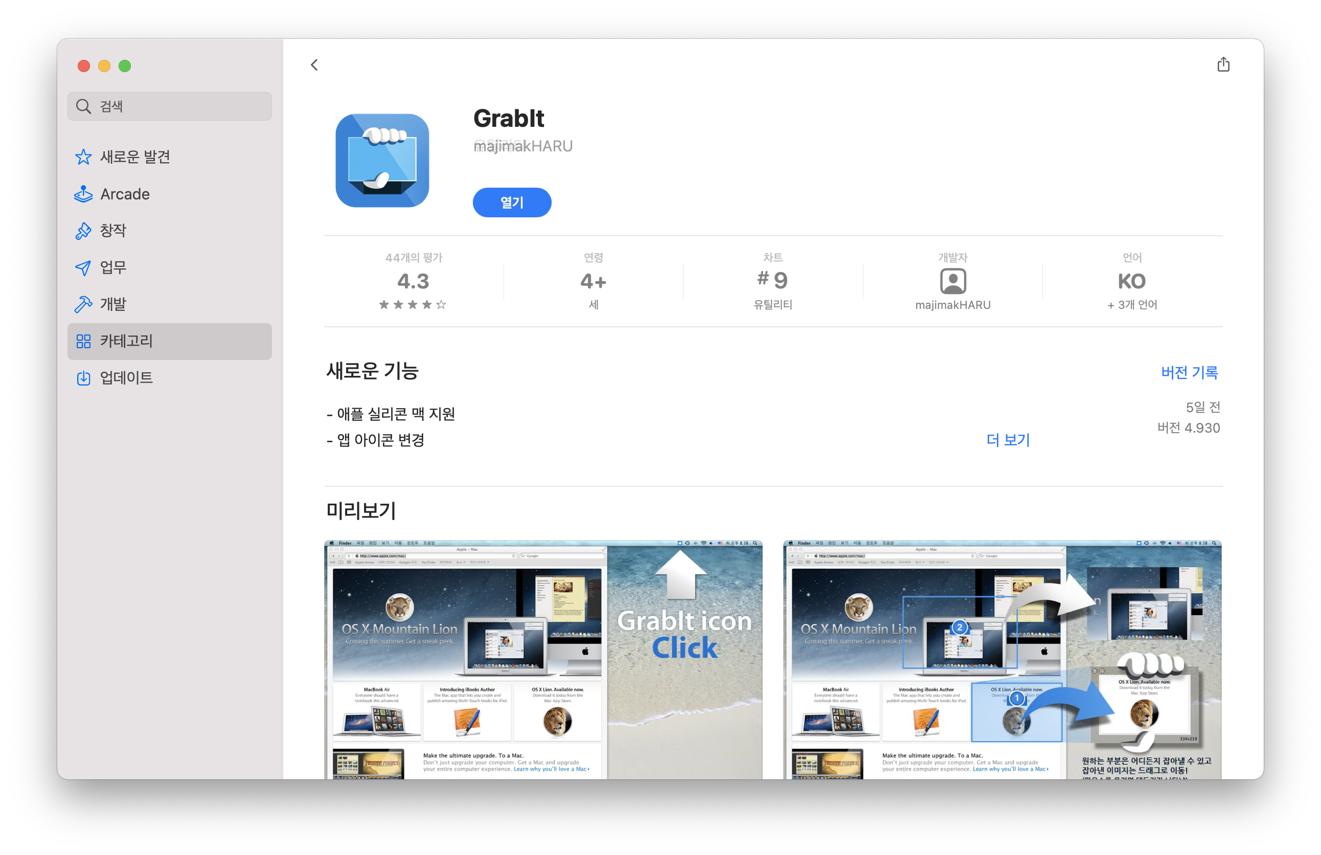 스크린샷 프로그램인데 스크린샷을 화면에 띄워놓을 수 있다는 장점이 있습니다. 이게 무슨 소린고 하니, 필요한 부분을 찍어서 띄운 상태로 참고할 수 있다는 소리인데요. 띄워놓은 후에는 파일을 보내거나 다른 작업을 할 수 있습니다. 맥 기본 스크린샷과는 또 다른 형태로 자주 쓰는 앱입니다.