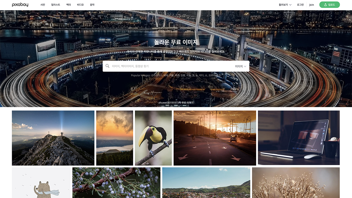 무료 이미지 사이트하면 아마 가장 먼저 떠올릴 만한 곳이 픽사베이(Pixabay)가 아닐까 싶습니다. 생각보다 다양한 이미지를 찾을 수 있으며, 품질도 훌륭한 편입니다. 개인적으로 영어로 검색하는 편이 훨씬 더 정확한 이미지를 찾을 수 있었습니다. 이미지마다 톤이 튀는 느낌은 있지만, 기고자 정보 보기를 통해 찾아 들어가면 톤을 비슷하게 맞추는 데 도움이 됩니다.