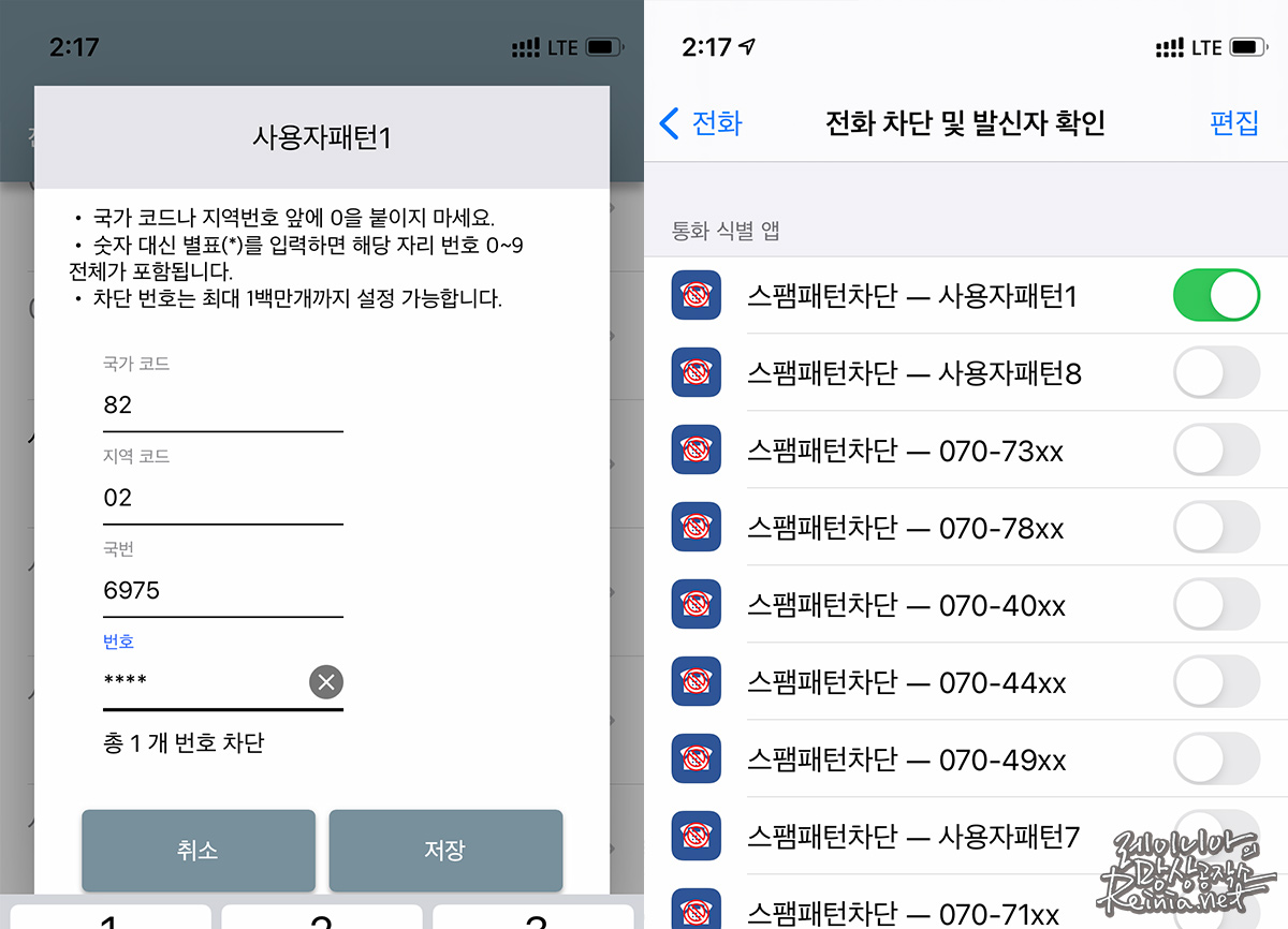 아이폰 특정 국번 차단하기 - 스팸패턴차단 앱