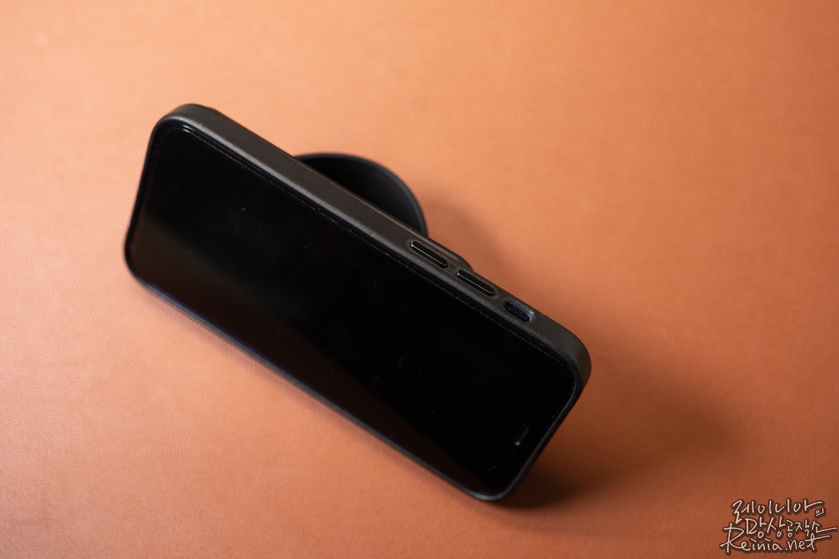 전반적인 디자인은 무난합니다. 자석이 들어있어 아이폰 혹은 케이스와 맞닿는 부분은 단단한 재질입니다. 언젠가 뒷면이나 케이스에 흠집을 낼 것 같다는 의구심이 듭니다. 실제로 장기간 사용 시 뒷면에 흠집이 날 수 있으니 케이스 위에서 쓰거나, 필름 등을 부착하고 쓰는 게 좋다는 안내가 있네요.