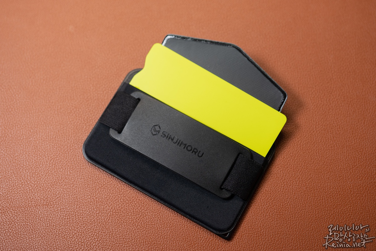 외관에서 고급스러움이 느껴지지는 않으나, 그렇다고 저렴한 티가 느껴지는 것도 아닙니다. 실제로 촉감을 살펴보면 카드 수납공간과 밴드의 유연성 때문에 부드러운 느낌이고, 동시에 '아주 튼튼하진 않겠다.'하는 생각이 듭니다.