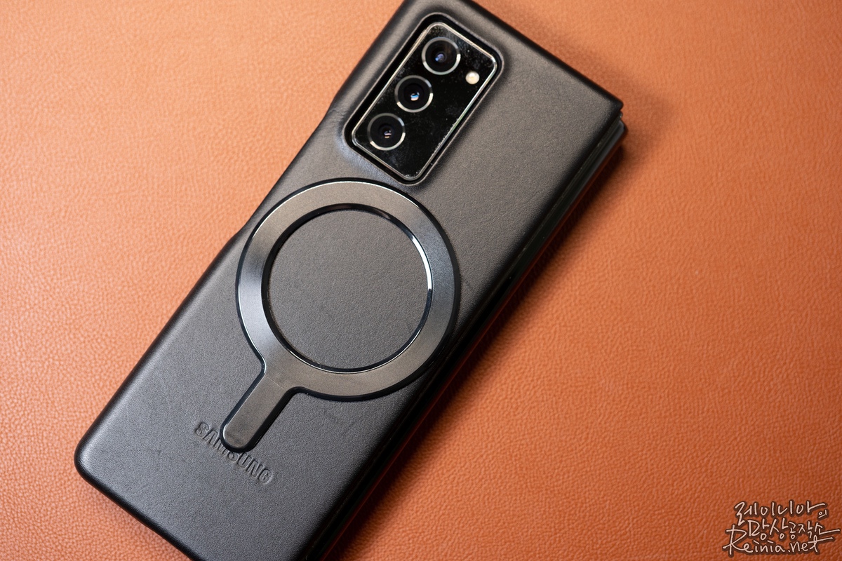 제조사에서 권장하는 방법은 아니나 저렴한 가죽 케이스 위에 M플레이트를 부착했습니다. 스마트폰의 다른 기능에 전혀 문제가 되지 않으면서, 동시에 M-밴드그립을 부착할 수 있습니다. 스마트폰이 크기에 이를 지탱할 수 있는 밴드그립이 도움이 됐습니다. 삼성페이를 지원하기에 지갑이 꼭 필요하진 않지만, 어쨌든 함께 들고갈 수도 있고요.