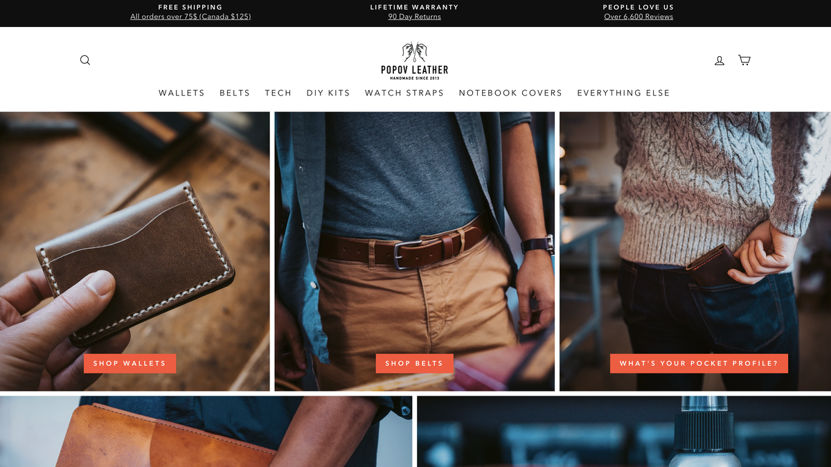 Leather Wallets made to order by Popov Leather. We handcraft men's wallets, card holders, belts, and more. No hassle-returns and guaranteed for life. All made with premium, full-grain Horween leather.