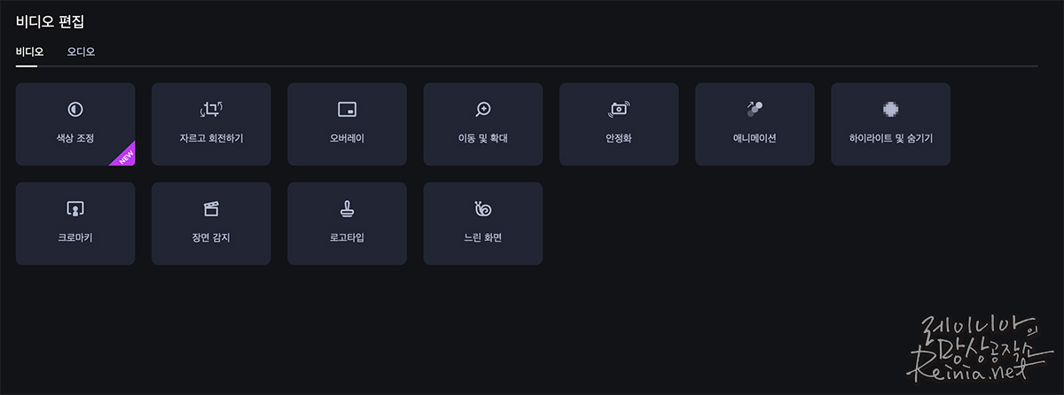 다양한 기능을 외부 채널을 통해 받아야 하는 것과 다르게 기본적으로 제공하는 옵션이 많아서 이를 사용하는 것만으로도 앞서 말씀드렸다시피 ‘제법 괜찮은 결과물’을 만들 수 있는 것이죠. 영상 제작에 대한 감을 잡아가는 데도 도움이 되는 툴이라고 생각합니다.