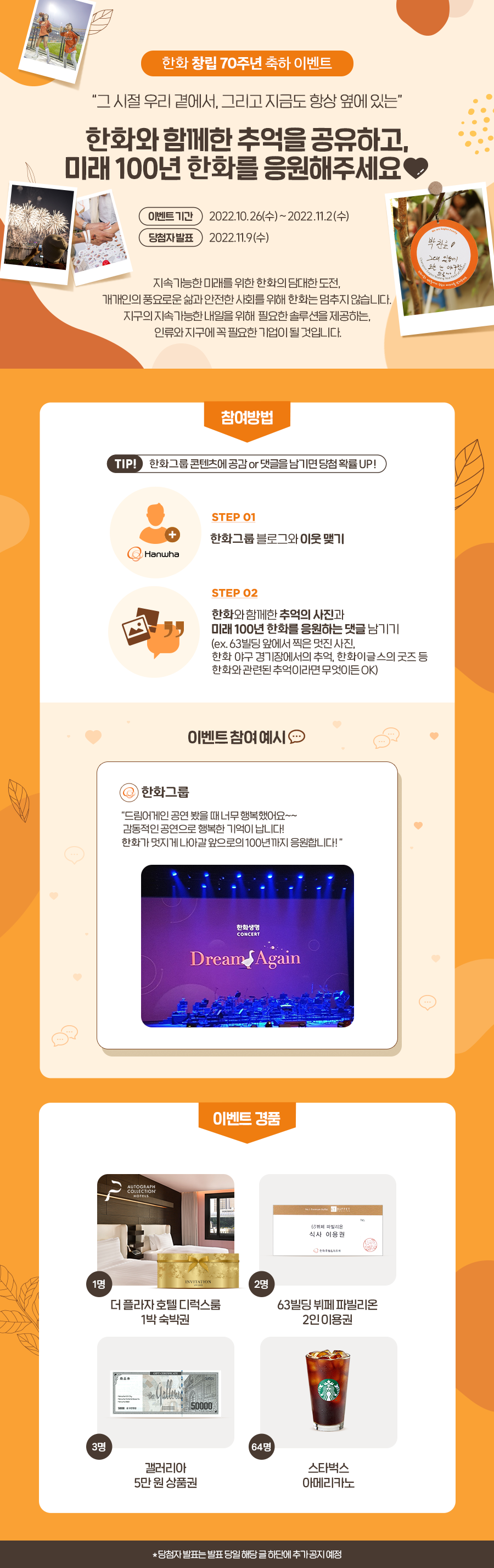 [이벤트] 한화그룹 70주년 축하 이벤트! 한화와 함께한 추억을 공유하고 미래 100년 한화를 응원