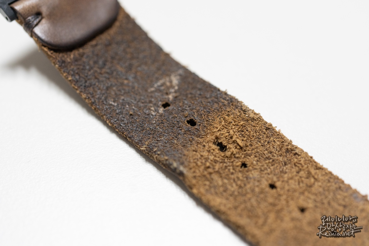 약 1년 정도 지난 지금, 어디 망가진 부분 없이 잘 쓰고 있습니다. 여전히 만족스러운 스트랩이며, 고급스럽고 정품 외 스트랩 중 가장 만족스럽습니다.