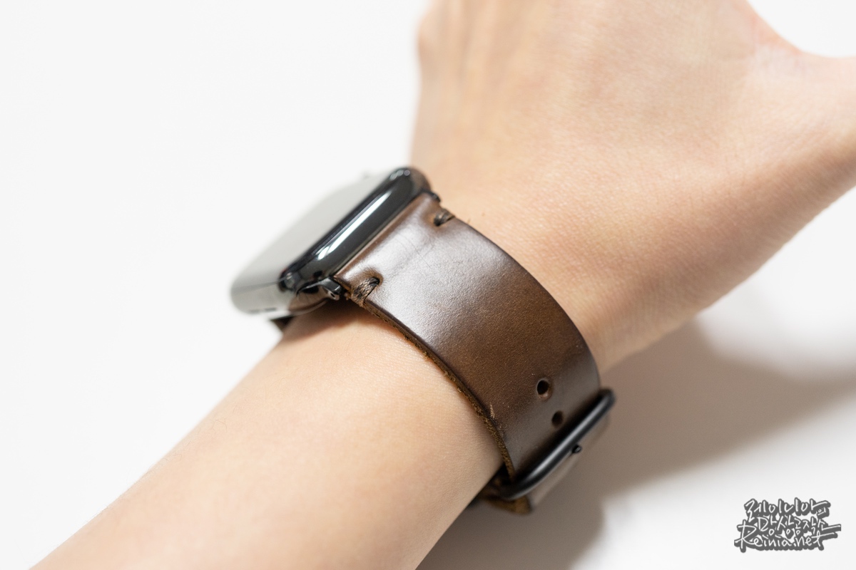 약 1년 정도 지난 지금, 어디 망가진 부분 없이 잘 쓰고 있습니다. 여전히 만족스러운 스트랩이며, 고급스럽고 정품 외 스트랩 중 가장 만족스럽습니다.