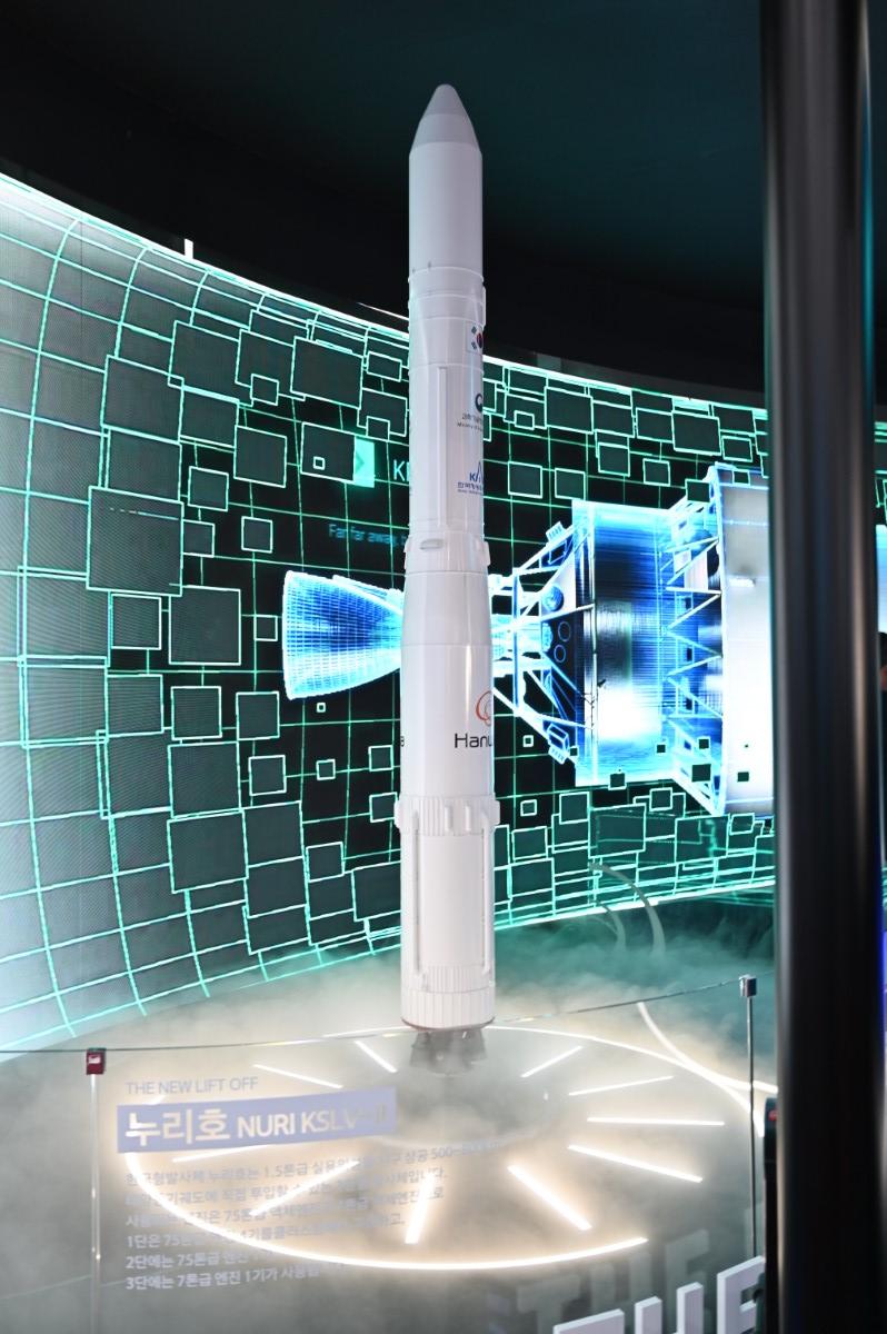한화그룹은 '스페이스 허브 존' 을 통해 한국 최초의 독자 우주발사체인 누리호, 그리고 누리호와 함께 발사한 한화시스템의 위성 3종을 선보였습니다.