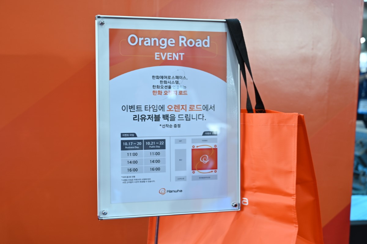 저도 업무 때문에 2019년에는 아덱스 2019 비즈니스 데이를 다녀왔는데요. 올해의 아덱스 2023은 2009년 첫 개최 이후 최대 규모로 열렸다고 하네요. 한화그룹은 방위산업에 꾸준히 관심을 기울였고, 올해는 한화오션을 출범하면서 육해공을 아우르는 포트폴리오를 강화했습니다. 그 모습을 이번 아덱스 2023에서 볼 수 있었습니다. 한화의 브랜드 컬러인 오렌지 색을 강조한 오렌지로드를 바탕으로 이벤트 또한 진행했다고 하네요.