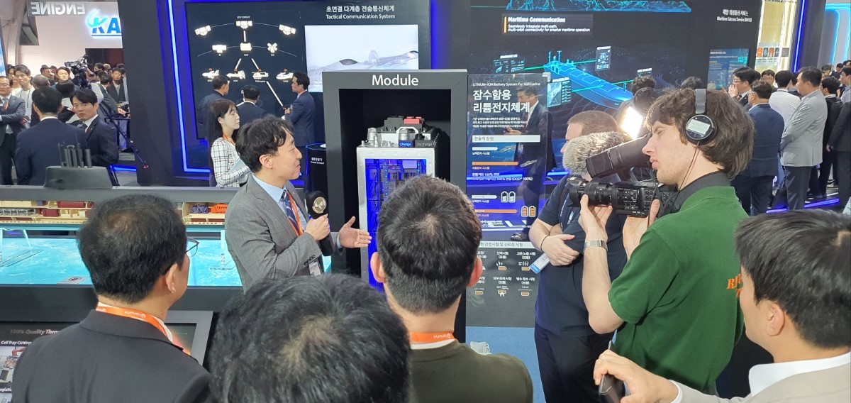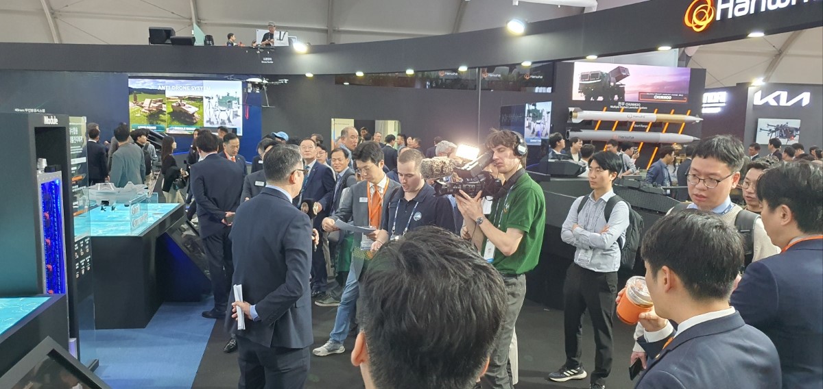 한화 부스의 다양한 볼거리는 각국 취재단의 관심 또한 사로잡았다고 하는데요. 한화오션은 특히 장보고-III 배치-II를 전시하며, 관심이 더욱 높았다고 합니다.