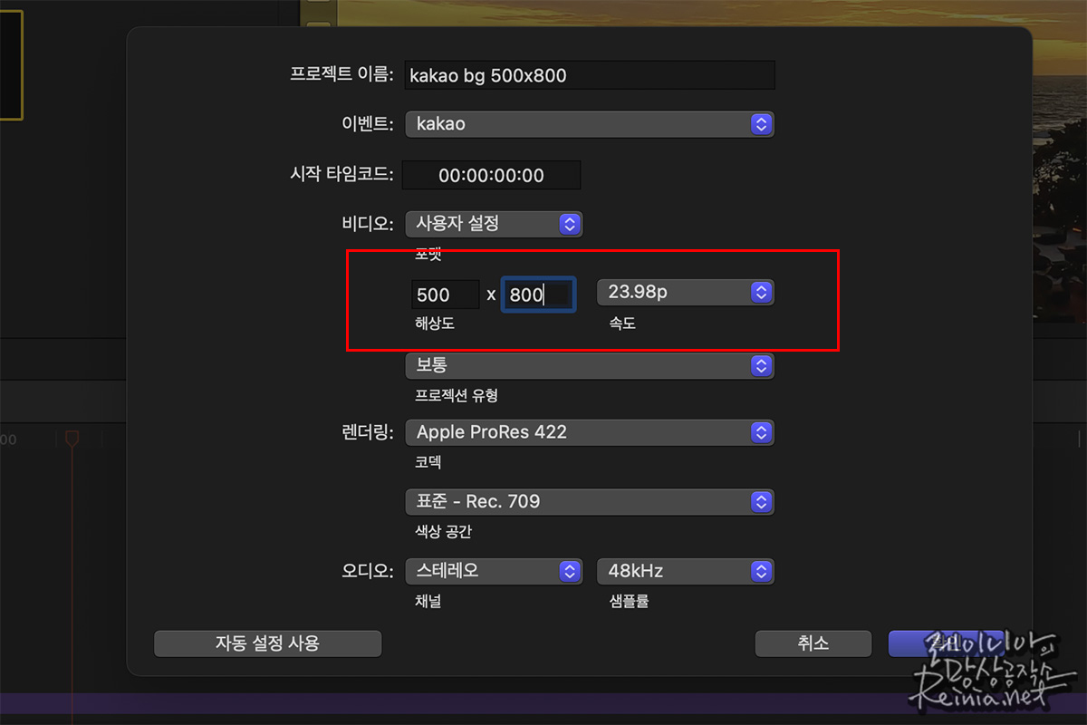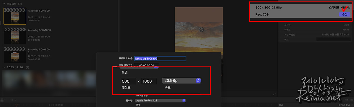 파이널컷 영상 프로젝트 파일 크기 조정하기