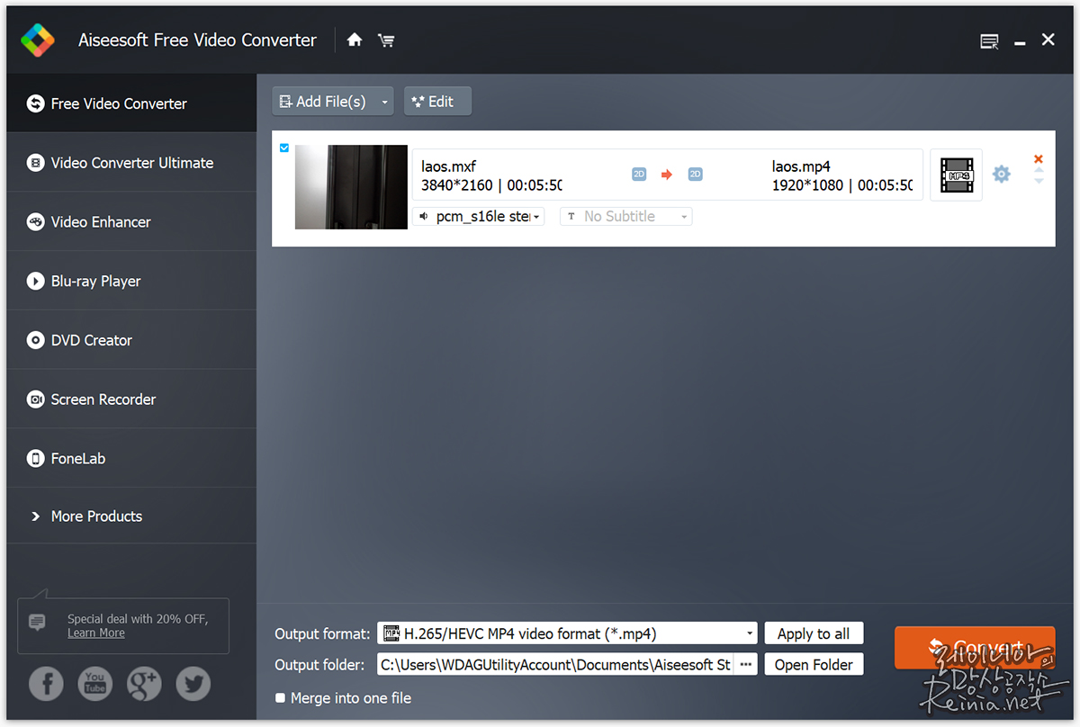 에이아이씨소프트(Aiseesoft)의 비디오 컨버터 프로그램은 이름처럼 무료라는 장점이 있습니다. 그 외에 다양한 기능은 있지만, 기본적으로 영상 변환은 무료입니다.