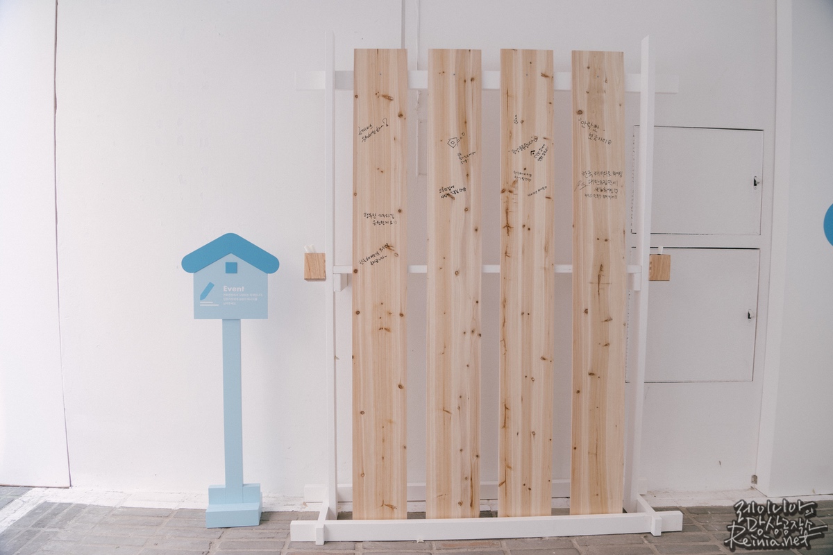 안내를 따라 다시 지상으로 돌아오면 해비타트에서 사용하는 목재에 응원의 메시지를 남길 수 있는 공간도 있었습니다.