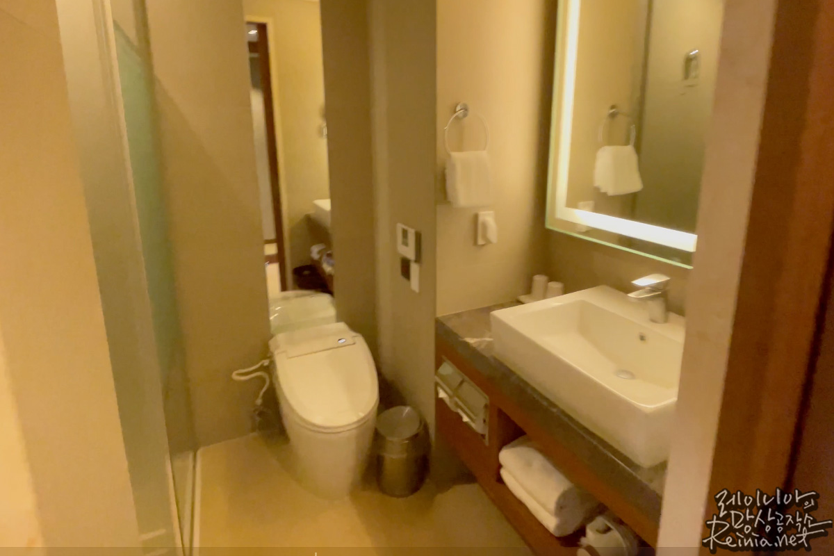 일회용품 사용을 줄이기 위해 많은 어메니티를 다회용으로 제공하고 있으며, 칫솔 등은 별도로 구매해야 했습니다. 어메니티의 품질이 대단히 뛰어나다는 느낌은 아니었지만, 쓰기에 나쁘지 않았습니다.