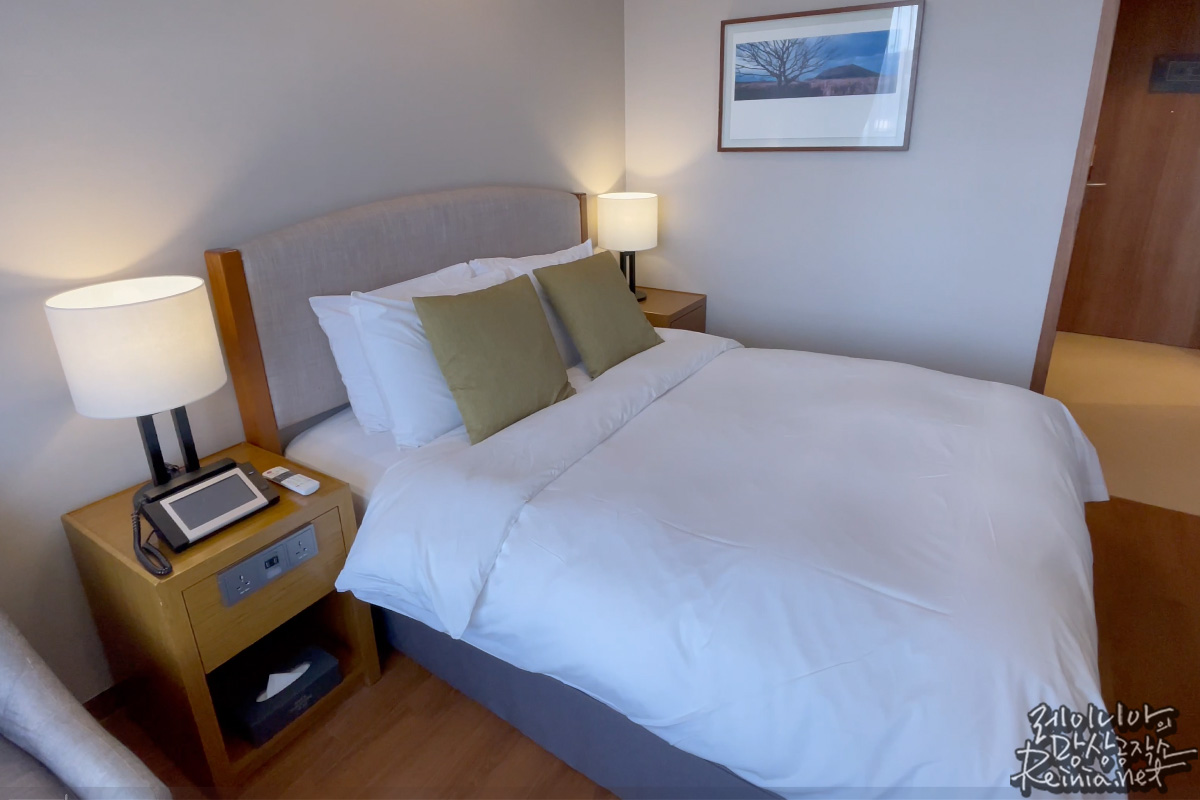 방향은 정원 방향이었는데, 12월 말의 제주가 그리 춥진 않고 볕도 잘 드는 곳이라 별도의 난방을 하지 않았는데도 추운 느낌은 없었습니다. 개인적으로는 카페트 베이스의 호텔이 그렇듯 약간 건조한 느낌이 있어서 가습기 대여를 요청했습니다. 가습기의 용량이 그리 크진 않아서 이 부분은 조금 아쉬웠네요.