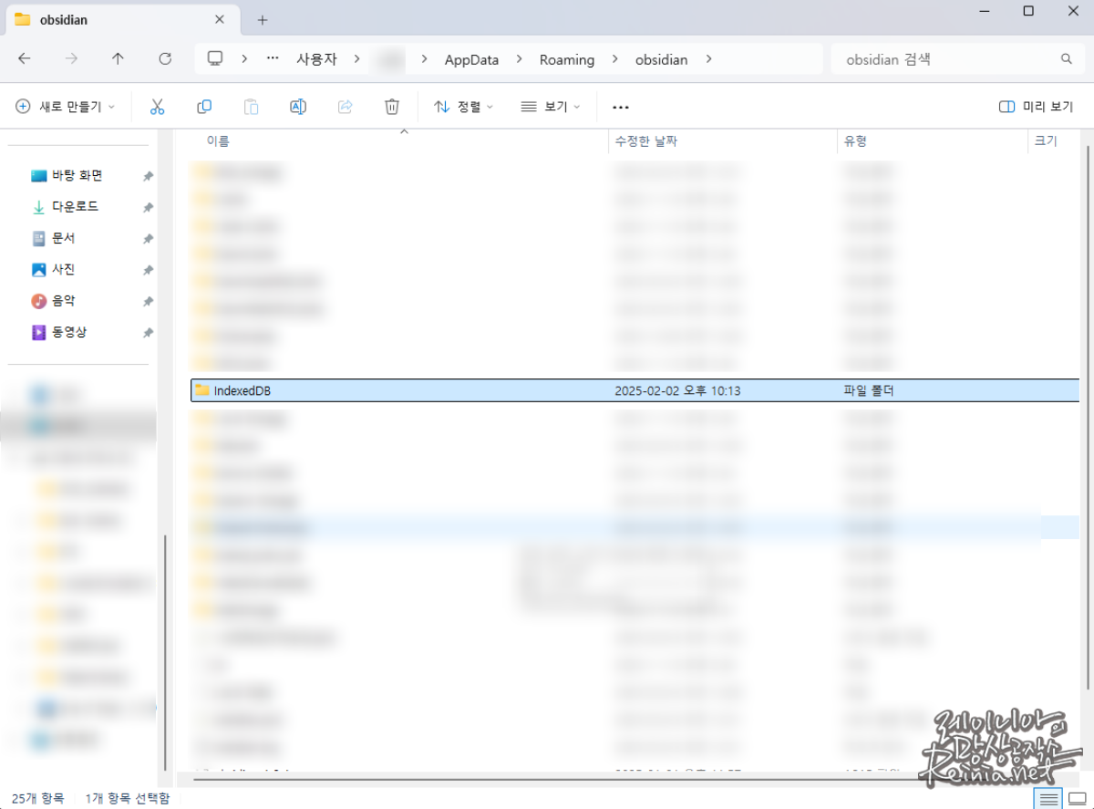 (Windows) c:\user\{사용자 이름}\AppData\Roaming\obsidian\IndexedDB