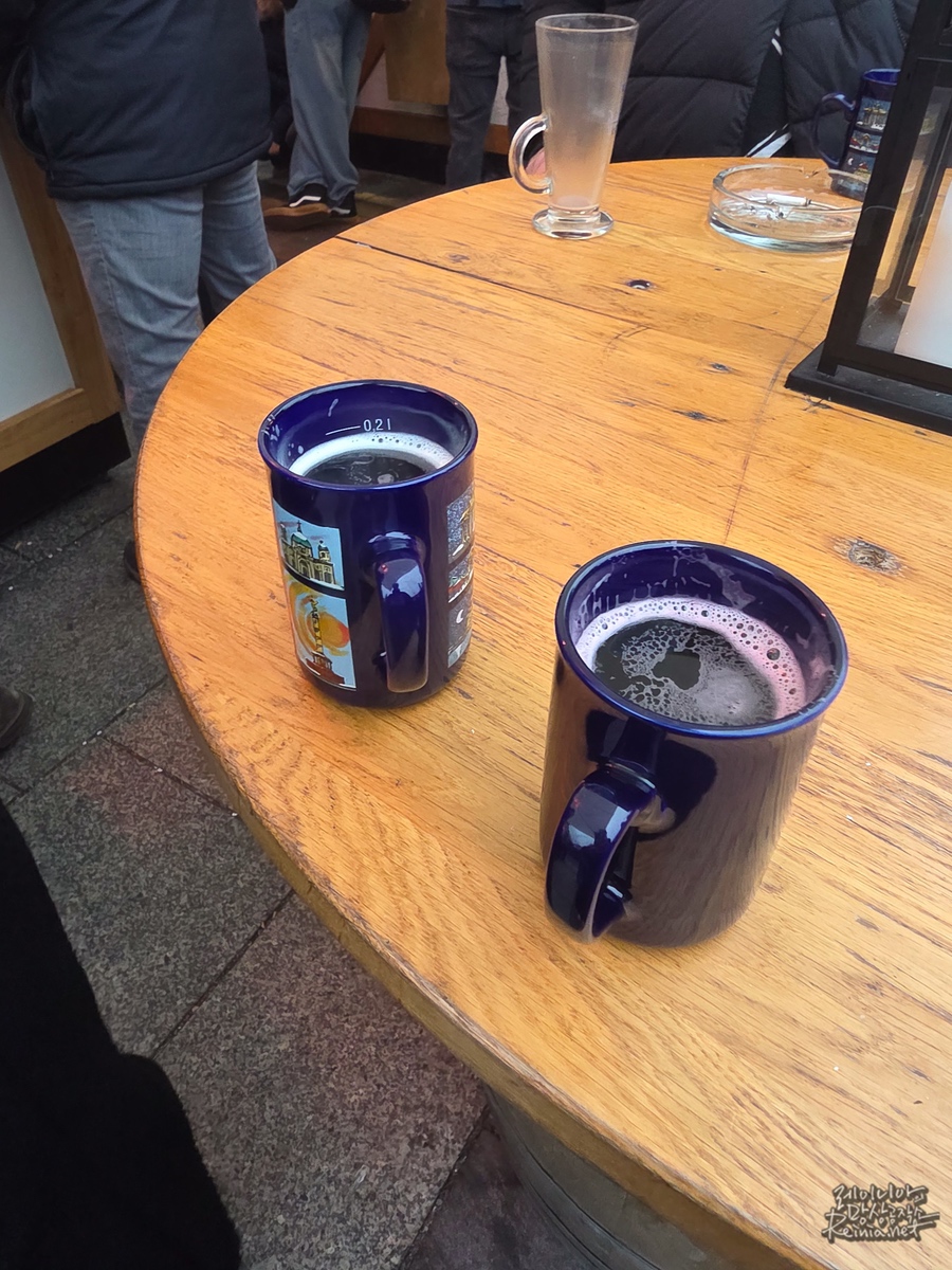 크리스마스 마켓에는 다양한 먹을 거리가 있지만, 실제 먹고 마신 것 위주로 간단히 소개해드리겠습니다. 아마 가장 유명한 건 글뤼바인 (Glühwein)이겠죠. 와인에 향신료와 과일을 넣고 데워 마시는 음료로 뱅쇼랑 비슷하지만, 좀 차이가 있다고 하더군요. 크리스마스 마켓에서 마셨던 글뤼바인은 제법 알콜이 있어서 추운 곳에서 몇 잔 마시면 금세 얼굴이 발그스름해졌습니다.