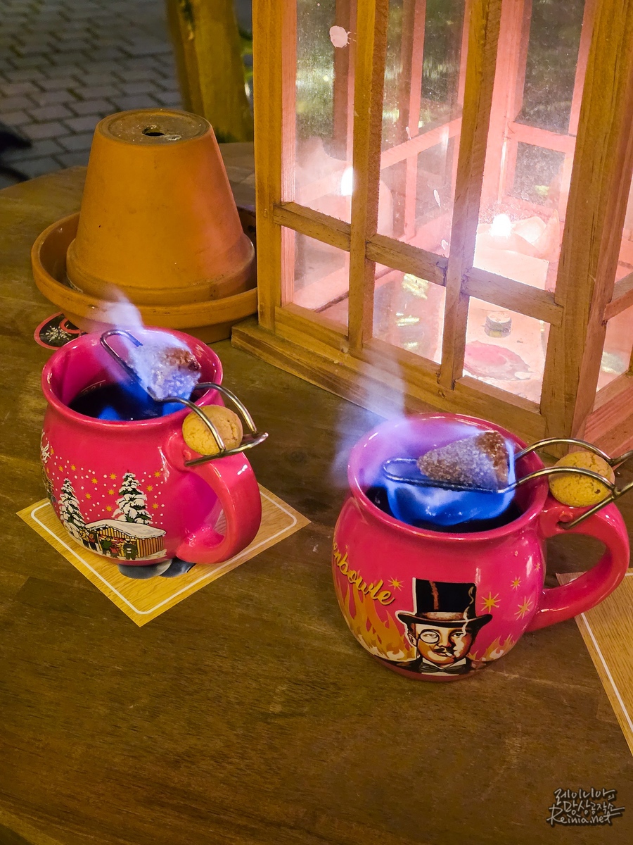 추위를 단번에 날리고 싶다면 포이어장겐볼레(Feuerzangenbowle)를 주문해 보세요. 글뤼바인 위에 럼을 적신 설탕 원뿔을 올리고 불을 붙인 이 술은, 보는 맛 만큼이나 도수가 높습니다. 한 잔 마시고 나면 몸속에 작은 난로가 켜진 듯 후끈해집니다.